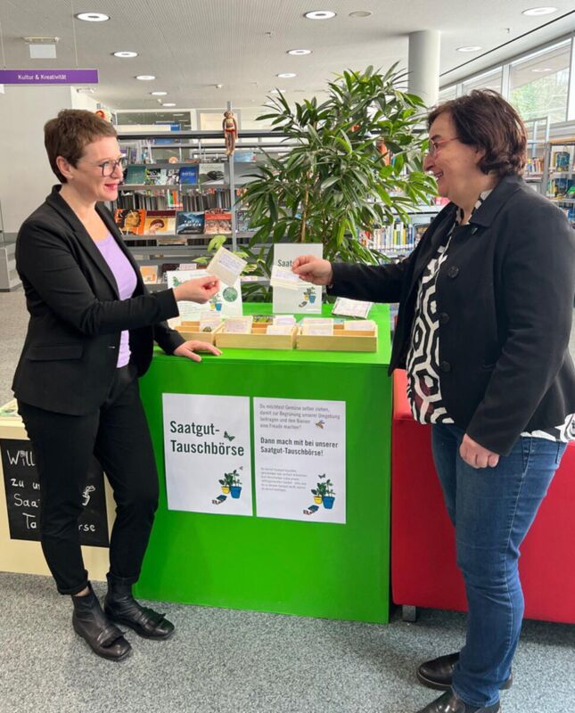 Die Stadtbibliothek stellt zum Start der Tauschbörse einen Mix aus Gemüse-, Kräuter und Blumensamen zur Verfügung: von Karotte, Kürbis und Salat über Rosmarin und Salbei bis zur Ringelblume. Auch Informationen zum Gärtnern finden Interessierte in Form von Ratgebern zum Ausleihen oder Vor-Ort-Schmökern vor.