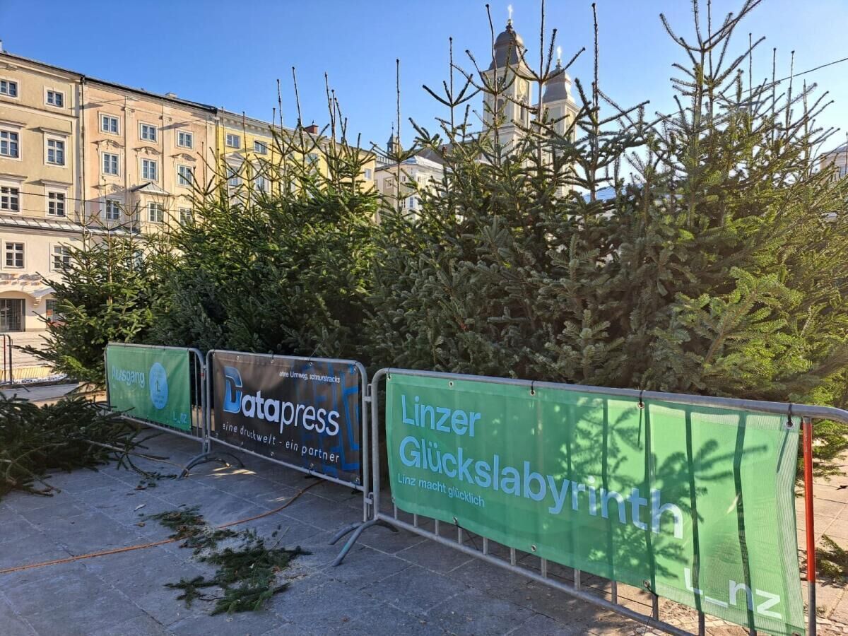 LINZ. Mit dem „Glückslabyrinth“ wird am Linzer Hauptplatz alten Christbäumen ein neuer Sinn verliehen. Die Winterattraktion kann von 12. Jänner bis 1. Februar täglich von 10 bis 20 Uhr bei freiem Eintritt besucht werden. Der Aufbau dafür schreitet zügig voran.