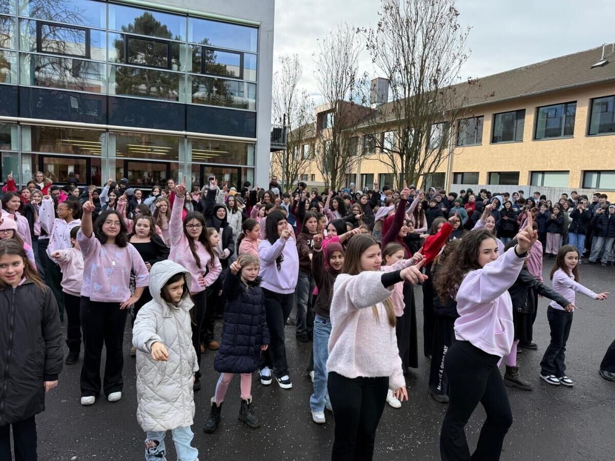 Die eindrucksvolle Gemeinschaftsaktion unterstrich den starken Zusammenhalt des Schulzentrums und dessen klares Bekenntnis zu Mädchen- und Frauenrechten.