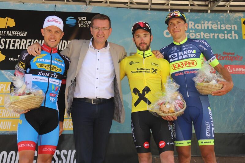 Das Finale der Int. Oberösterreich Rundfahrt 2021 war an Spannung nicht zu überbieten.So kam das Hauptfeld nach einigen erfolglosen Ausreißversuchen geschlossen ins Stodertal und zum Anstieg auf die Hutterer Höss. Gleich nach dem Beginn des Anstiegs bildete sich mit Alexis Guerin, Riccardo Zoidl, Michal Schlegel (Team Elkov-Kasper) und Pawel Cieslik (Voster ATS Team) eine starke Vier-Mann-Spitzengruppe. 4,2 Kilometer vor dem Ziel attackierte Ricci Zoidl und konnte eine Lücke zwischen sich und den Verfolgern auffahren. Nur Alexis Guerin konnte folgen, bis zur Ziellinie belauerten sich die beiden Topfahrer. Am Ende hatte Alexis Guerin das bessere Ende für sich und siegte nach 3:15:18 Stunden mit einer einzigen Sekunde Vorsprung auf Ricci Zoidl. Der Tscheche Michal Schlegel kam mit 29 Sekunden Rückstand als Dritter ins Etappenziel. Stark auch Jonas Rapp, der als Fünfter mit 1:03 Minuten die Hutterer Höss erreichte. „Ich freue mich riesig über den Sieg bei der Rundfahrt. Der Anstieg war sehr intensiv, aber ich hatte sehr gute Beine und viel Selbstvertrauen“, so der Sieger.