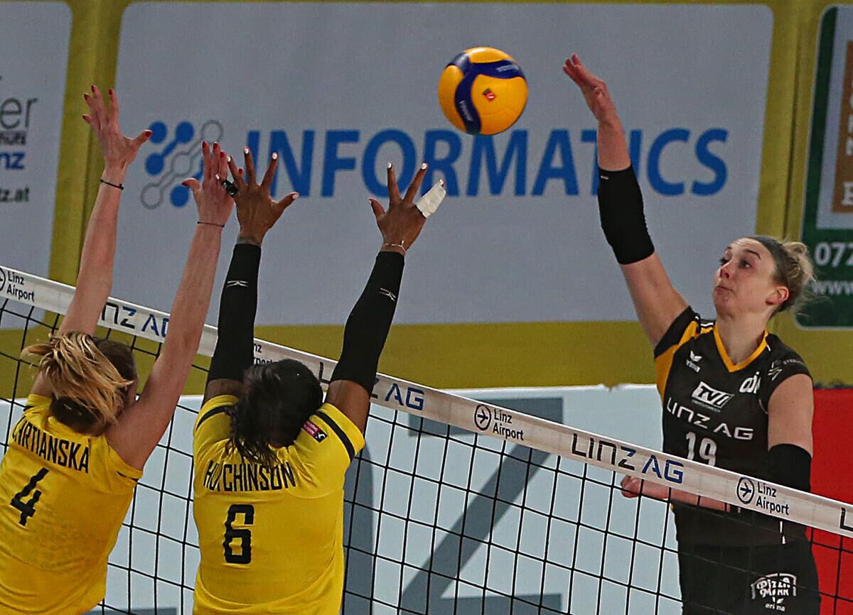 Einziger Wermutstropfen, aus Sicht von Linz-Steg: Für Mittelblockerin Andrea Duvnjak war die Partie verletzungsbedingt bereits Mitte des ersten Satzes vorbei.