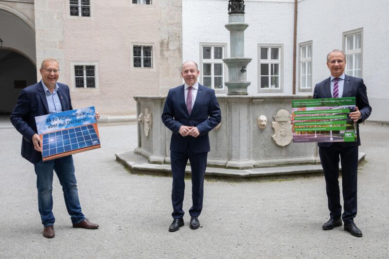 OÖ. Die heimische Landwirtschaft bekenne sich zur Energiewende und zum Ausbau der Photovoltaik, aber diese dürfe nicht zu Lasten der agrarischen Flächen gehen, so Agrar-Landesrat Max Hiegelsberger. Gemeinsam mit Kurt Weinberger, dem Vorstandsvorsitzenden der Österreichischen Hagelversicherung und Werner Beutelmeyer, Geschäftsführer des Linzer Market-Instituts hielt er ein Plädoyer für den Schutz des Bodens und gegen weitere Versiegelung.