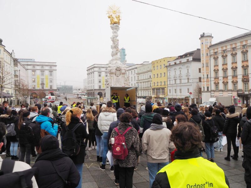 Geht es nach Bildungsminister Martin Polaschek, soll heuer die mündliche Matura wieder verpflichtend stattfinden. Dagegen wehren sich Schüler und machen mit Streik auf ihre Forderungen aufmerksam. Schon am 18. Jänner hatten sich Schüler zu Streiks unter anderem vor dem BRG Hamerling, der HAK Auhof und dem BRG Solar City versammelt. Am 26. Jänner streikten die Schüler am Hauptplatz und zogen über die Nibelungenbrücke. Die SPÖ-nahe Aktion kritischer Schüler (AKS) fordert, dass Maturanten im Jahr 2022 die Wahl haben, ob sich ihr Maturazeugnis aus den Noten der letzten beiden Schuljahre zusammensetzt oder ob sie eine reguläre schriftliche Matura und eine freiwillige mündliche Matura machen. Denn: Eine reguläre Matura sei „unfair“, betont betont Mara Mittermayr, stellvertretende AHS-Landeschulsprecherin (AKS). Denn: Die aktuellen Maturanten haben nun schon zwei Jahre unter den Corona-Einschränkungen gelitten.
