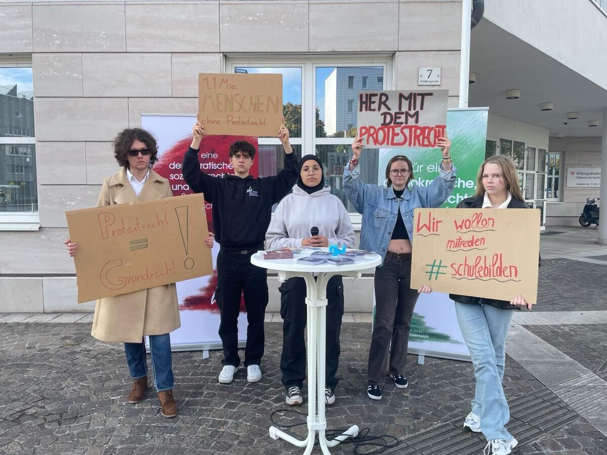 Jede arbeitende Person in Österreich dürfe ihre Arbeit ruhen lassen, um zu einer Demonstration oder einem Streik zu gehen, den Schülern werde dieses Recht jedoch verwehrt, so die Aktion kritischer Schüler Oberösterreich. Mit einer Kundgebung vor der Bildungsdirektion in Linz wollte die Gruppe darauf aufmerksam machen, das Protestrecht für Schüler einfordern und die Kampagne #schulebilden sichtbar machen.