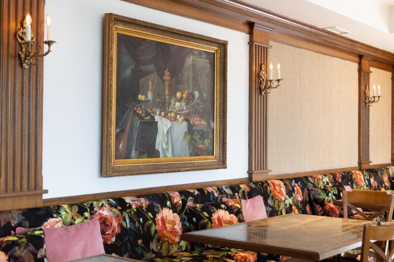 Für die Renovierung der Räumlichkeiten wurden handwerkliche Betriebe aus Oberösterreich eingesetzt. Norbert Kaimberger (Etech, Emoton / Gebäudetechnik) etwa kümmerte sich um eine sich selbst kühlende Decke aus Lehm. Damit sollen die Räume zugfrei gekühlt und Energie gespart werden können. Um dem in früheren Zeiten oft kritisierten Hall im Gastraum entgegenzuwirken, wurden außerdem großzügige Vorhänge, ebenfalls in auffälligem Muster, aufgehängt.