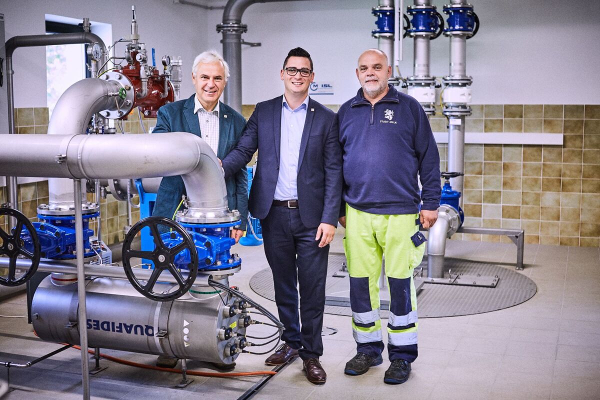 Drei Oberwasserpumpen wurden gegen leistungsfähigere Unterwasserpumpen ersetzt, neue Absperrschieber wurden installiert, alle Rohrleitungen sowie die Steueranlage im Brunnenhaus erneuert. 177.000 Euro kostete die neue Fernwirkanlage – Wassermeister Helmut Steffek kann damit von seinem Büro im Wirtschaftshof aus den Brunnen Spielberg sowie den zweiten Brunnen in der Kolomaniau und den Hochbehälter am Wachberg steuern. Saniert wurde auch der Außenbereich der Anlage: die geschotterte Zufahrt wurde verbreitert und asphaltiert. Jetzt ist die Zufahrt zum Brunnenhaus auch mit Lkw möglich. Ein wesentlicher Bestandteil für die Versorgungssicherheit wird noch heuer im Herbst geliefert: ein mobiles Notstromaggregat. 450.000 Kubikmeter Wasser werden im Gemeindegebiet von Melk pro Jahr verbraucht. 70 Prozent davon liefert der Brunnen Spielberg – seine Kapazität würde aber auch für die gesamte Menge reichen. Die restlichen 30 Prozent liefert der 2004 in der Kolomaniau errichtete Brunnen. Mit Wasser versorgt werden die Stadt Melk und die Orte Spielberg, Pielach, Pielachberg, Schrattenbruck, Pöverding, Winden und Neuwinden sowie Teile der Gemeinde Schollach.