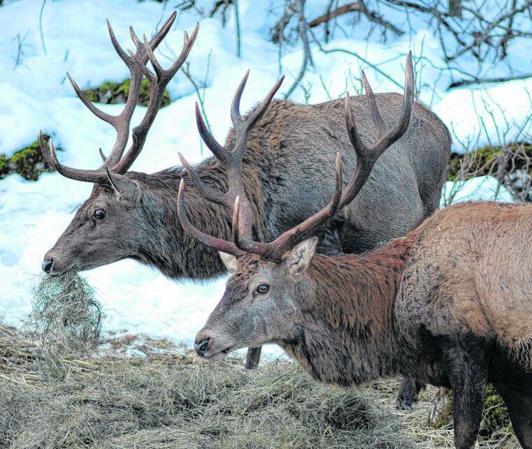 MOLLN. Die Rotwildschaufütterung im Bodinggraben bei Molln ist wieder in Betrieb. Der Winter treibt das Wild zu den Futterstellen, wo es mit Ferngläsern beobachtet werden kann.