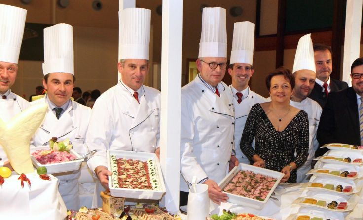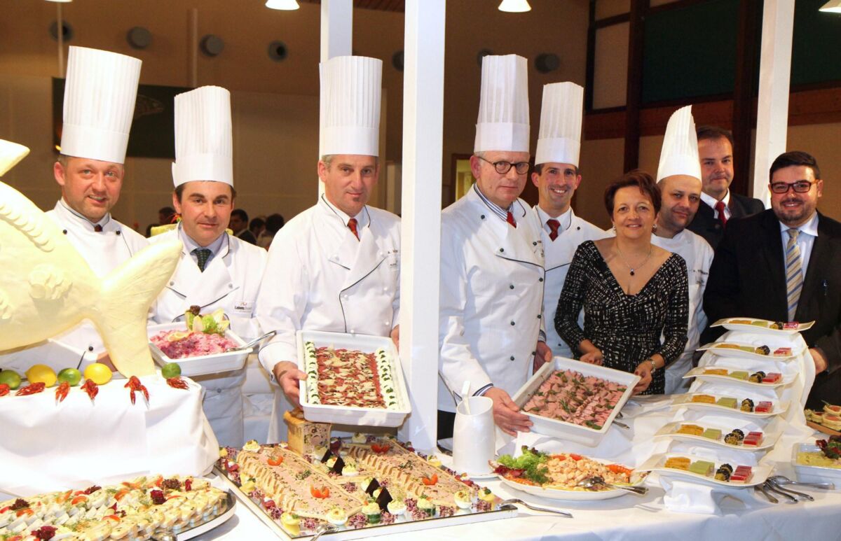 Gastronomie-Leiter Küchenchef Josef Fischer-Ankern und sein Team kredenzten Köstlichkeiten aus dem Meer aber auch Regionales „aus Wald und Flur“: Auf der Buffetkarte standen unter anderem Galantinen von Seeforelle, Skrei, Lachs, Zander, Seeteufel und Jakobsmuscheln mit Parmaschinken, Potpourri von Edelfischen über Buchenholz geräuchert, gelierte Linsen mit Zander und Limonen-Kokossüppchen mit Hummer. Konditormeister Kurt Steininger sorgte für das ausgezeichnete Dessertbuffet, unter anderem mit Topfen- und Joghurtvariationen aus der eigenen Bio-Molkerei, Mousse au chocolat, Waldviertler Mohnnudeln und einem Schokoladebrunnen mit verschiedenen Früchten. Das Serviceteam servierte die passenden Biere und Weine für diesen gelungenen Abend. Die Küchenchefs und Serviceleiter der Partnerbetriebe Brauhotel Weitra und Lebens.Resort Ottenschlag unterstützten ihre Kollegen aus dem Moorheilbad Harbach bei der Umsetzung.