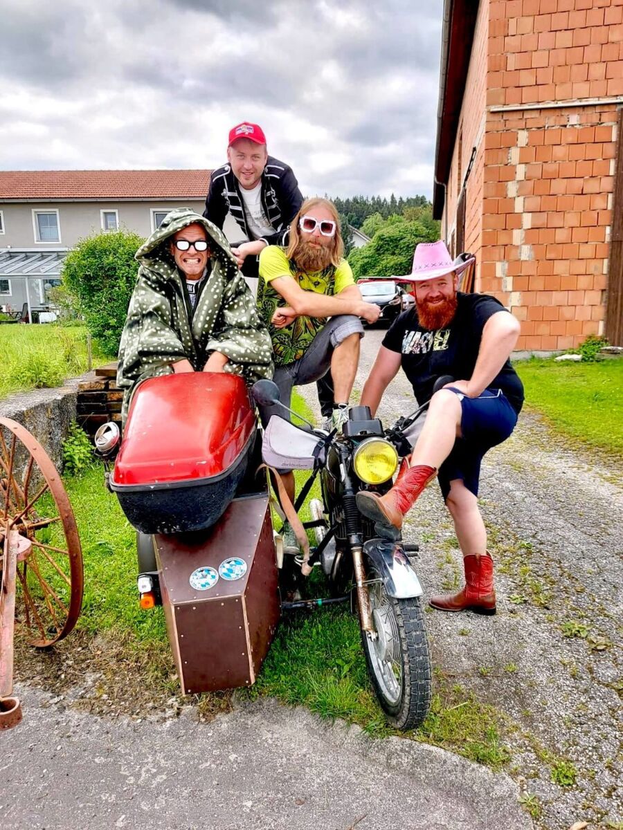 Sie reisten mit der Kehrmaschine nach Tschernobyl, fuhren mit dem Traktor durch St. Tropez und mit motorisierten Toiletten nach Istanbul. Die vier Mitglieder des Kulturvereins Haarausfall sind bekannt für schräge Ideen und wilde Expeditionen. Ihre Abenteuer dokumentieren sie mit der Videokamera und produzieren spektakuläre Filme für die Nachwelt. Für ihr neuestes Projekt legen Kogsi, Masch, Schlappi und Schuppe auf drei umgebauten Beiwagen-Gespannen 8.500 Kilometer bis in die Mongolei zurück. Unter dem Titel „Mongo Bongo. Khans Attacke mit Affenbukkake“ können sich Fans der Truppe wieder auf schräge Aktionen, verrückte Gefährte, Explosionen, brennende Gebäude und witzige Kostüme freuen. Die Vorbereitungen starten bereits in diesem Jahr, richtig ernst wird es ab Mai 2021. Dann beginnen die Dreharbeiten für den Vorspann und das Training für die Tour. Abfahrt der Gefährte ist am 25. Juni 2022, Premiere des Films ist am 11. November 2022 im Peuerbacher Kinosaal.