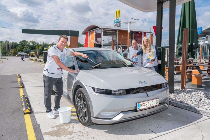 Unter dem Motto „Saubere Sache: Gutes tun“ greifen am 16. Juni 2023 Franchisenehmer und Restaurantmitarbeiter in ganz Österreich zu Schwamm und Kübel und sorgen für strahlende Windschutzscheiben der McDrive Gäste. Dabei werden Spenden für die Ronald McDonald Kinderhilfe gesammelt, die aktuell ihr bereits fünftes Haus in Wiener Neustadt einrichtet und den Neubau eines sechsten Hauses in Linz plant. Neben den bereits bestehenden Häusern in Wien, der Steiermark und in Salzburg unterstützt die Kinderhilfe damit zukünftig in zwei weiteren Bundesländern Familien während der Behandlungszeit an Spezialkliniken und Therapiezentren.