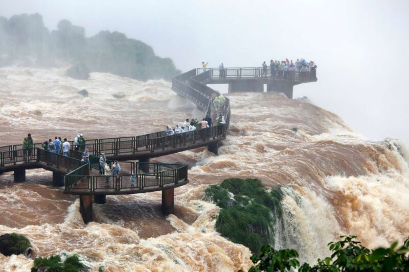 Der Wasserstand der Iguazu-Wasserfälle befand sich Anfang November auf einem rekordverdächtigen Niveau. Starke Regengüsse in der Region, die voraussichtlich durch das Wetterphänomen „El Nino“ verstärkt wurden, bescherten dem Naturwunder derartige Wassermassen, dass ganze Fußbrücken überschwemmt wurden. Aufgrund dessen wurden die bekannten Iguazu-Wasserfälle für Touristen zweitweise gesperrt, aktuell sind sie jedoch wieder passierbar.