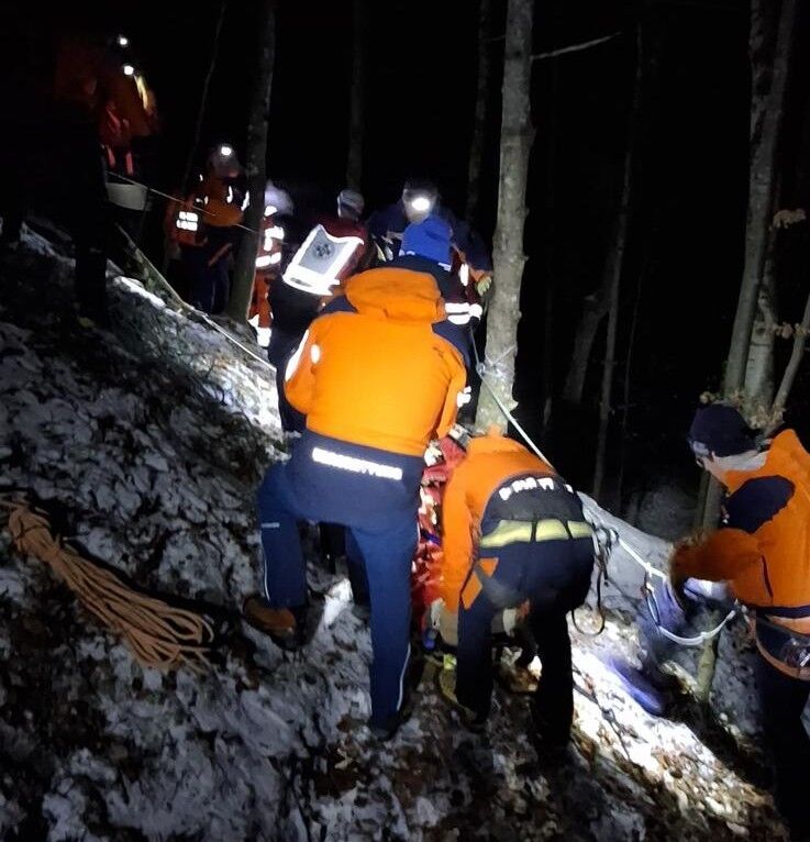 Bereits weniger als 20 Minuten nach der Alarmierung trafen die ersten Einsatzkräfte beim Verletzten ein. Ein Bergretter seilte sich mit einem 30 Meter langen Seil zu dem Mann ab und konnte ihn gerade noch sichern, da dessen Kräfte zunehmend nachließen. Polizei und Alpinpolizei leuchteten die gefährliche Unfallstelle aus, während parallel lebensrettende Sofortmaßnahmen eingeleitet wurden.