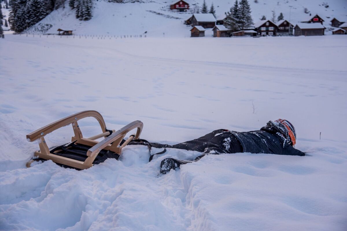 Schlitten gerät in Kurve außer Kontrolle
