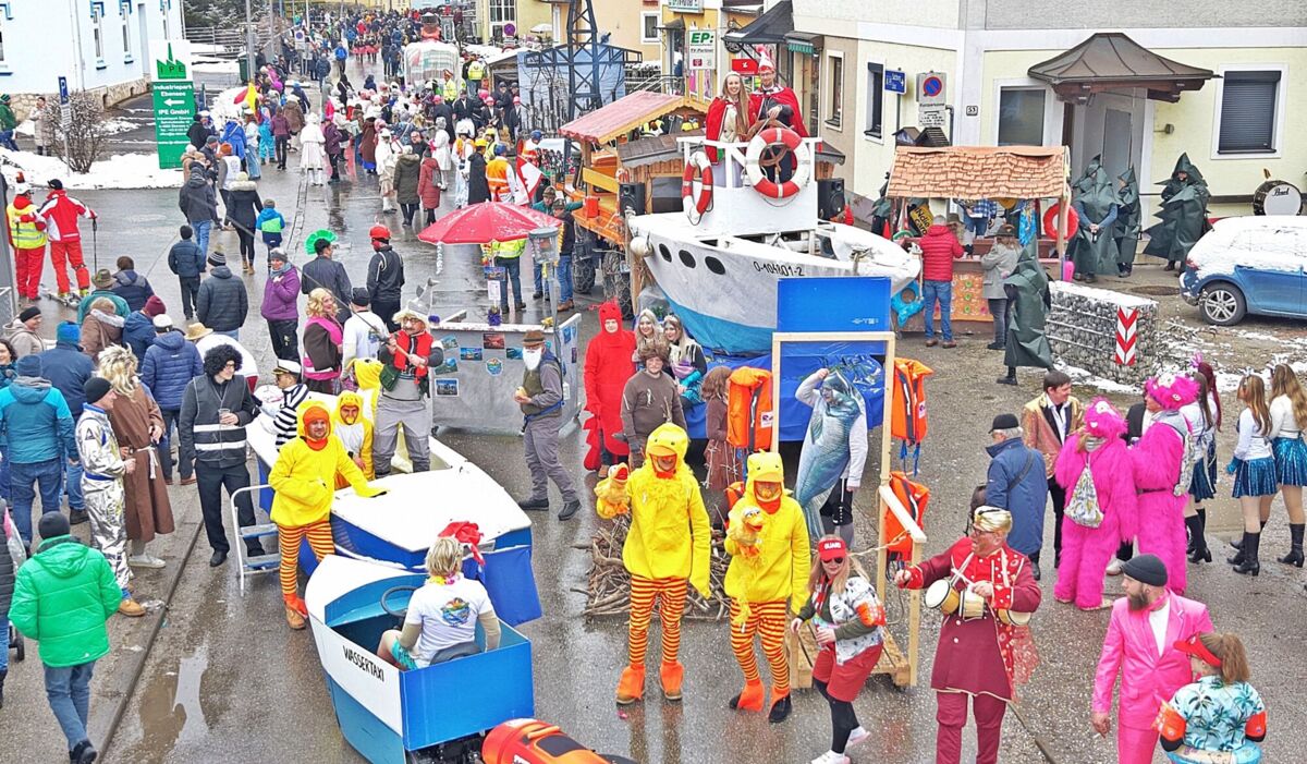 Ebensee feiert Fasching: Tausende erleben närrischen Umzug trotz Wintereinbruch