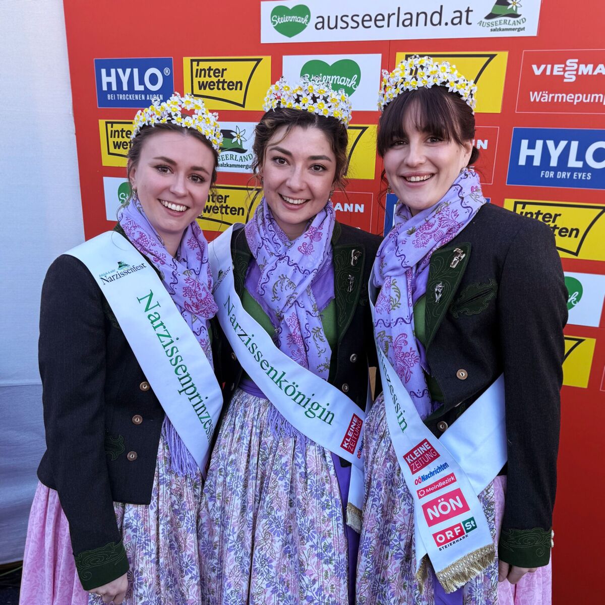Royaler Besuch beim Skiflug-Weltcup am Kulm: Die amtierenden Narzissenfest-Hoheiten Magdalena Egger, Johanna Murauer und Celina Gschaider sorgten am vergangenen Wochenende für besondere Aufmerksamkeit in Bad Mitterndorf. Als Botschafterinnen des Narzissenfests feuerten sie die Athleten bei einem der traditionsreichsten Bewerbe im internationalen Skisprungkalender an.
