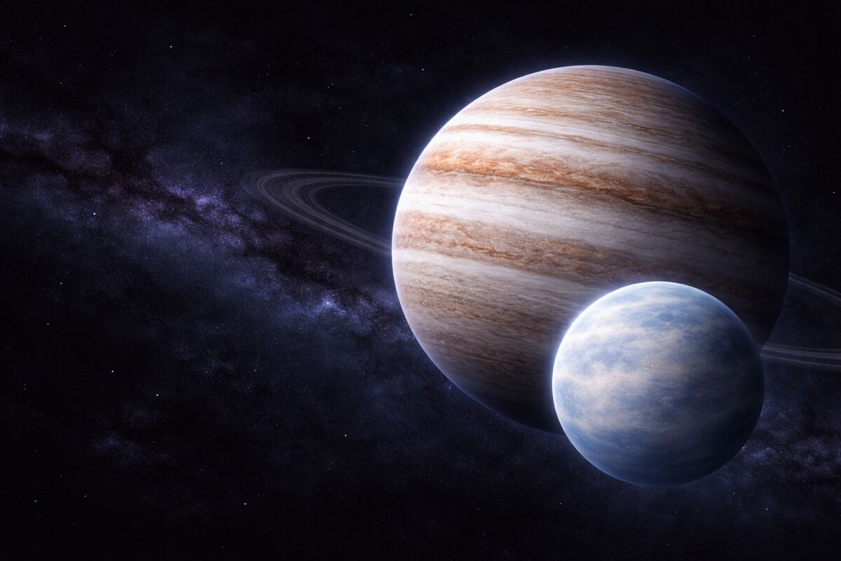 Wie die LMU auf ihrer Website berichtet, beschreibt die Studie keine entdeckte fremde Welt, sondern ein Rechenmodell. Untersucht wurde ein erdgroßer Exomond, also ein Mond außerhalb unseres Sonnensystems, der einen jupitergroßen Planeten ohne Stern umkreist.