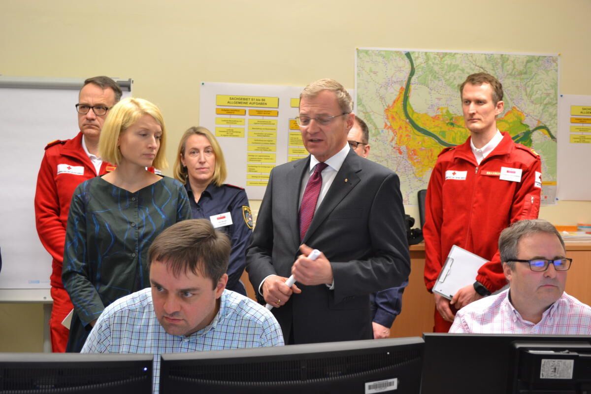 Rund 70 Personen des Krisen- und Katastrophenschutzmanagements des Landes Oberösterreich bilden den Krisenstab, der im Landhaus tagt. Daneben waren in allen Bezirkshauptmannschaften weitere Krisenstäbe mit jeweils 20 bis 30 Personen im Einsatz. Landesbedienstete waren in Summe rund 420 in den Krisenstäben aktiv.