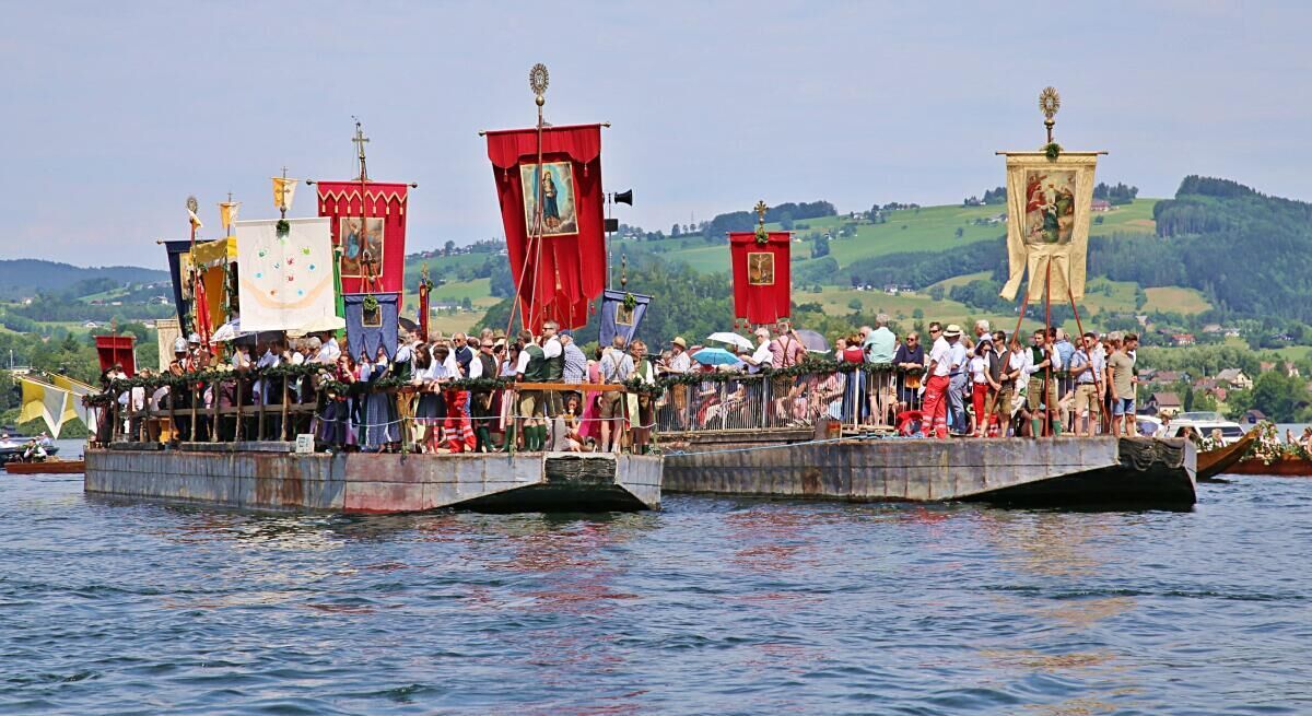 In Traunkirchen wird Fronleichnam seit dem zweiten Brand 1632 eine Seeprozession abgehalten. Ein Grund für diese Form der Prozession war neben dem räumlichen Problem aber besonders der religiöse Aspekt, galt es doch das Eucharistie-Geheimnis auf eine psychisch eindrucksvolle und pädagogisch wirksame Weise ins Bewusstsein der Teilnehmer zu rücken. „Auf dem See - Gott zur Ehr“, ist der Leitspruch der Fronleichnamsprozession im idyllischen Traunseeörtchen.