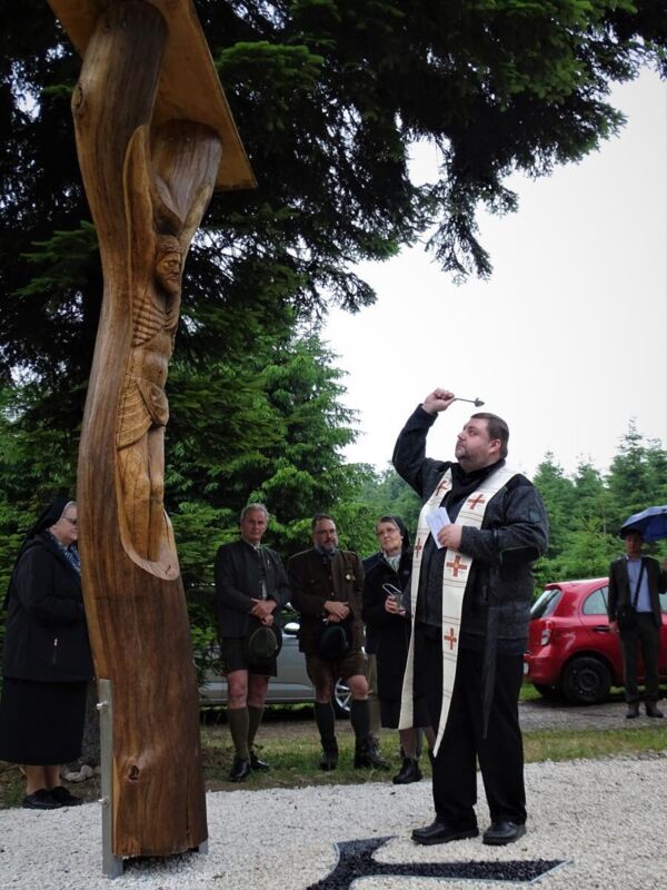 Nun wurde der frisch herausgeputzte Platz samt Marterl mit Menschen, die den Franziskanerinnen Vöcklabruck, allen voran Generaloberin Schwester Angelika Garstenauer und dem Forst verbunden sind, eingeweiht.