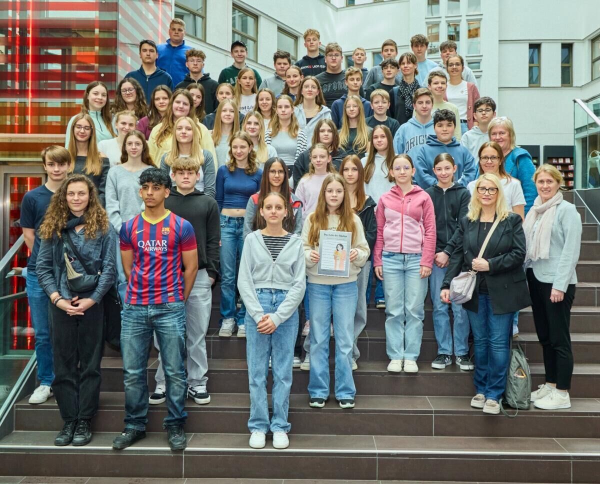 Neben den Zeitzeugengesprächen präsentierten Schüler aus mehreren Schulen ihre eigenen Projekte zum Thema Demokratie. Grundlage dafür war unter anderem die Graphic Novel „Die Bibliothekarin von Auschwitz“, die den Klassen zur Verfügung gestellt wurde.