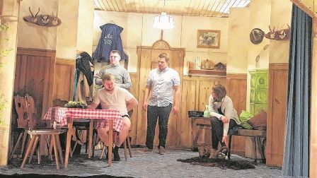 Silvester feiern auf einer Jagdhütte im Wald. Zu zweit träumen auf dem Schaffell vor dem Kamin. Frischen Wind in die eingefahrene Beziehung bringen. Eben Romantik pur. So stellt sich Birgit die kommenden Tage vor. Dass ihr Ehemann Siegfried dieser Hüttenromantik nicht allzu viel abgewinnen kann und hauptsächlich damit beschäftigt ist, sich um seine Gesundheit zu kümmern und jedes Staubkorn zu beseitigen, kann Birgit noch verkraften. Aber was dann passiert, zerrt doch sehr an ihren Nerven. Mit der unerwarteten Ankunft ihres Bruders Kurti beginnt das Verhängnis. Immer mehr ungebetene Gäste kreuzen auf: der Chef von Kurti mit Sekretärin und ein Flitterwöchnerpaar. Durch eine Reihe von Missverständnissen entwickelt sich eine Eigendynamik, die nicht mehr aufzuhalten ist. Was passiert mit dem Revierförster, der Augenzeuge eines vermeintlichen Einbruchs wird? Warum wollen Siegfried, Birgit und Kurti nachts ein Loch im Wald graben? Als wäre das Chaos aus Schwindeleien, Versteckspielen, Vertuschungs- und anderen Manövern noch nicht genug, kommt auch noch die Chefin von Kurti. Na dann: Prosit Neujahr“! Insgesamt kommt das Stück sechs Mal in der Volksschule zur Aufführung. Reservierungen sind unter Telefon 0676/9415162 möglich. Freiwillige Spenden sind als Eintritt erbeten.