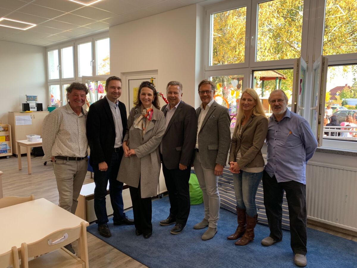 Während sich die Kinder an einem bunten Rahmenprogramm mit Spielen und Liedern erfreuten, hatten Eltern die Möglichkeit, die neuen Räumlichkeiten zu besichtigen. „Mit dem Ziel, die neue Gruppe nahtlos anzudocken, mussten auch bauliche Trennungen weichen. So gelang uns neben der Erweiterung um eine fünfte der Ausbau der bislang eingeschränkt betriebenen vierten Gruppe“, erklärt Bürgermeister Peter Mair. Auch die Grünspielfläche im Außenbereich wurde vergrößert.