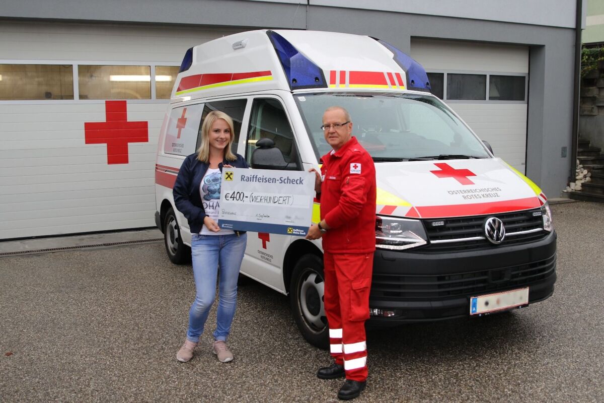 PENNEWANG/LAMBACH. Die Theatergruppe Pennewang hat 400 Euro an die Rot-Kreuz-Dienststelle Lambach/Stadl-Paura gespendet. Melanie Straßer hat Rot-Kreuz-Mitarbeiter Alfred Straßer den Betrag in Form eines Schecks übergeben.