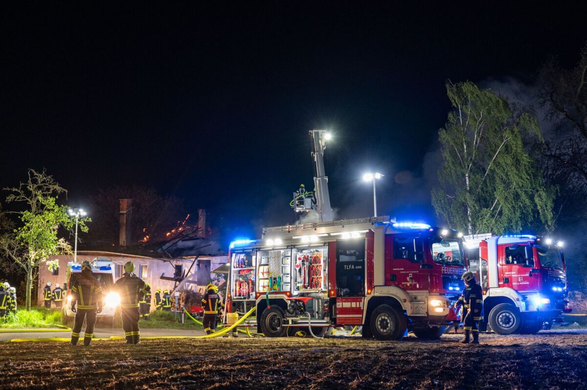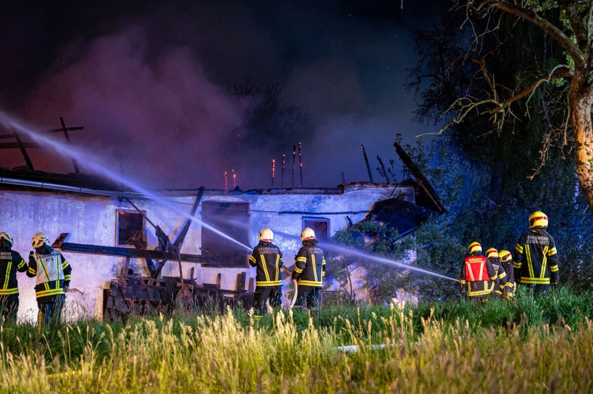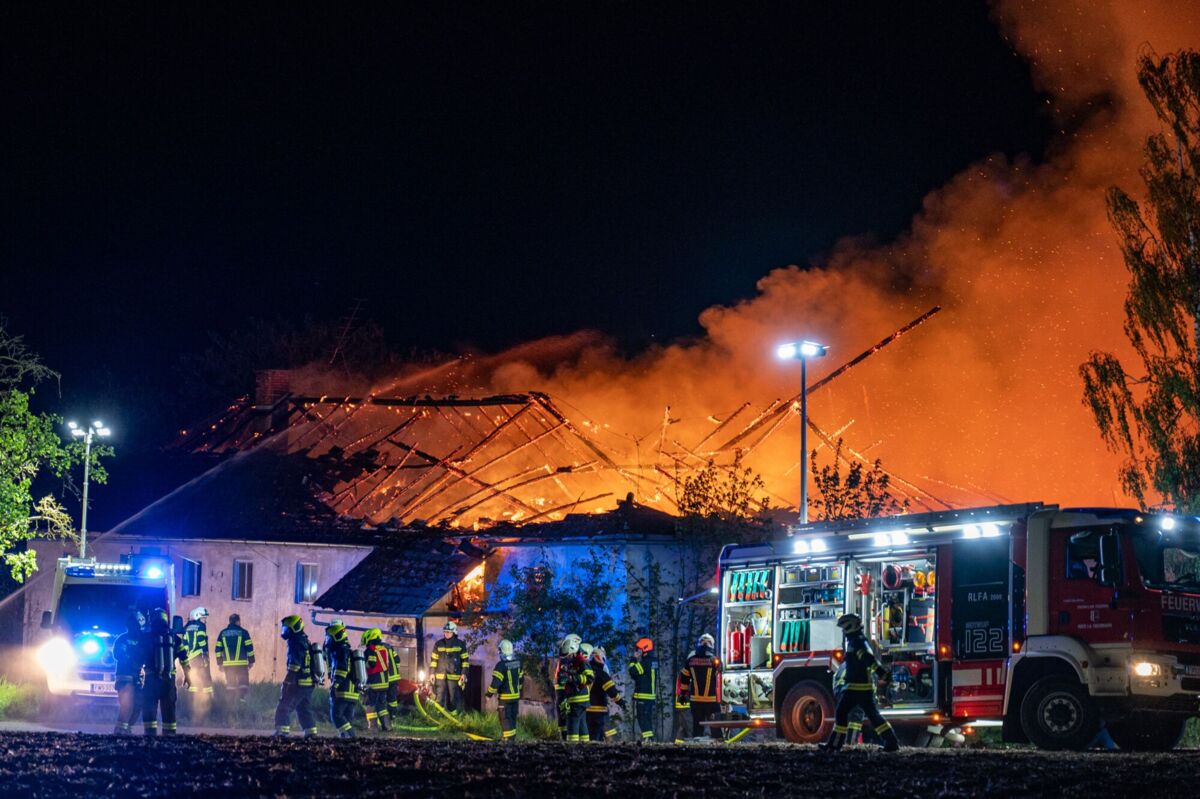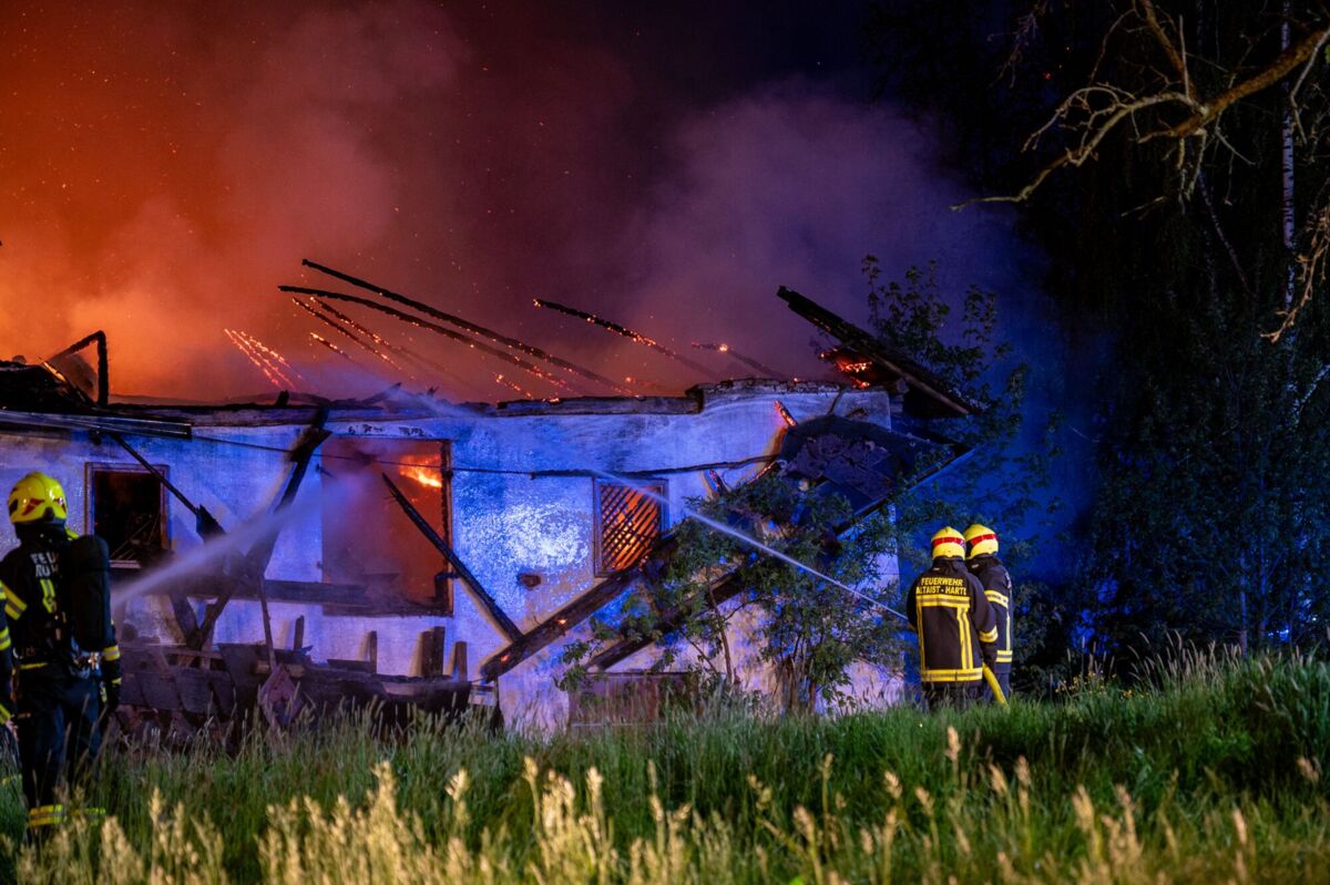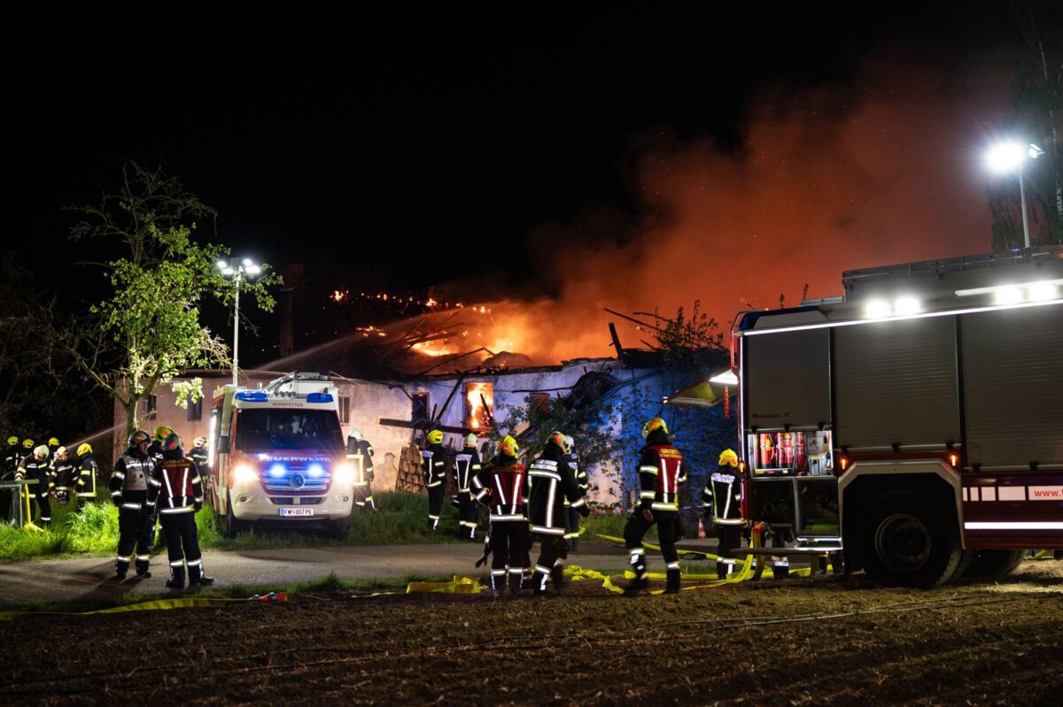 Den Feuerwehren gelang es, die zwei Bewohner noch rechtzeitig aus dem Gebäude in Sicherheit zu bringen. Aufgrund der Ausdehnung des Brandes läuft derzeit, Stand MIttwoch, 5.14 Uhr, ein Großeinsatz mit zahlreichen Feuerwehren.