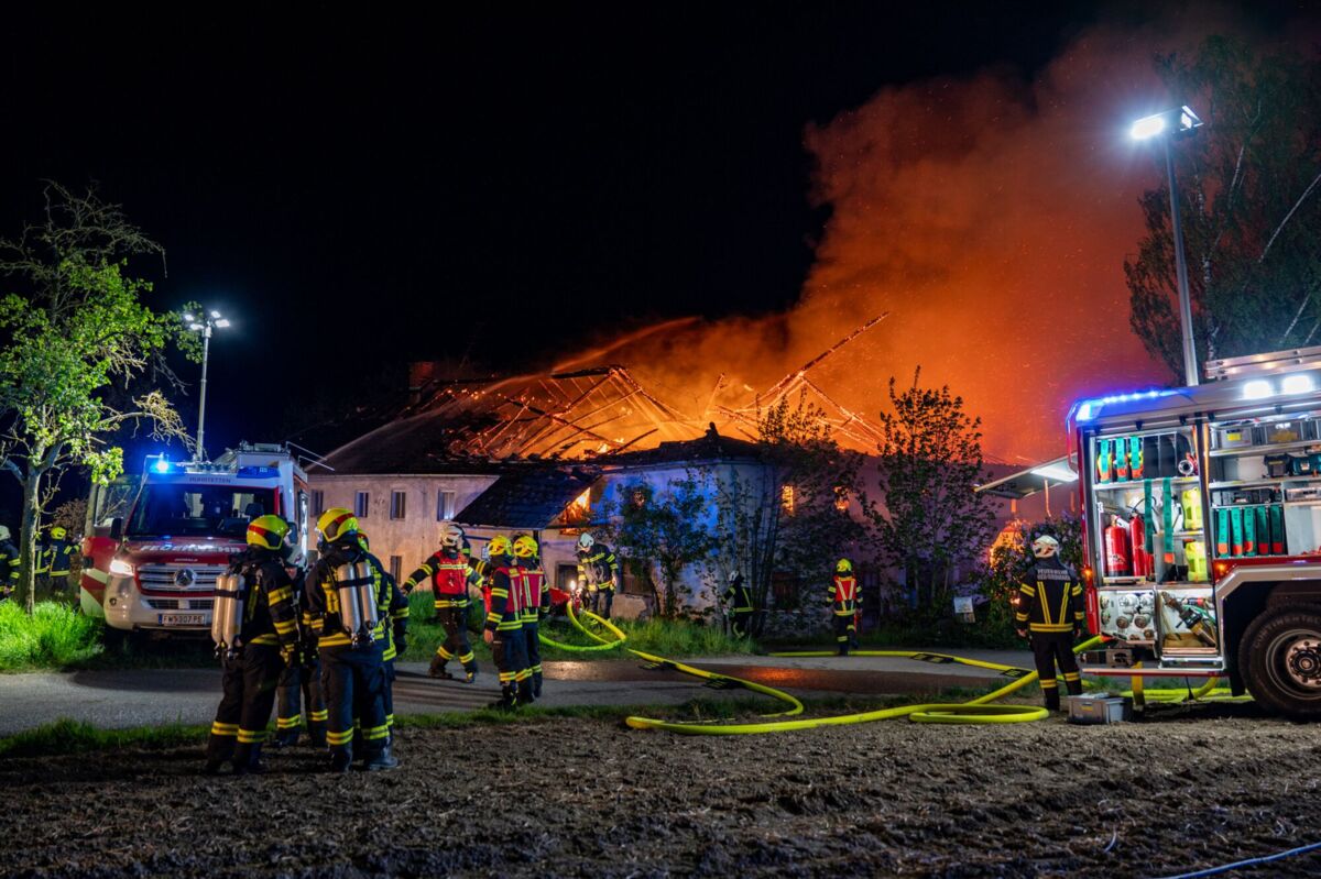 KATSDORF. In der Nacht auf Mittwoch ist in der Gemeinde Katsdorf ein Vierkanthof in Brand geraten und bis zum Eintreffen der Einsatzkräfte bereits in Vollbrand gestanden.
