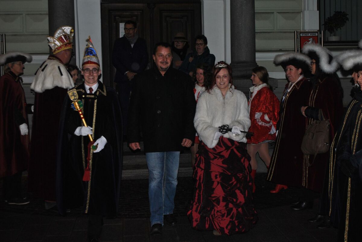 Am Freitag 11.11. um 17:11 Uhr wurde das Perger Rathaus von der Faschingsgilde gestürmt - angeführt vom diesjährigen Prinzenpaar Ihre Hoheit Prinz Friedrich I. von Spielmannszug und Catering sowie Ihre Lieblichkeit Prinzessin Tanja von Fotograf und Musik.