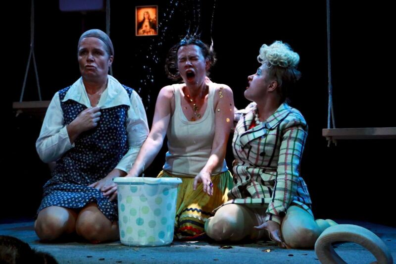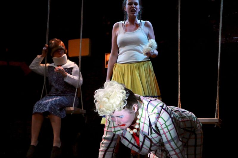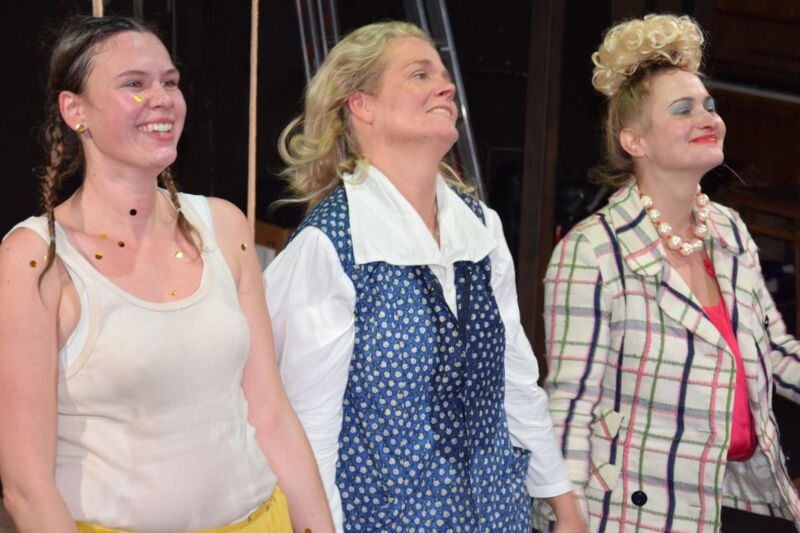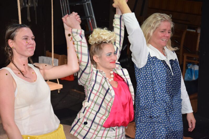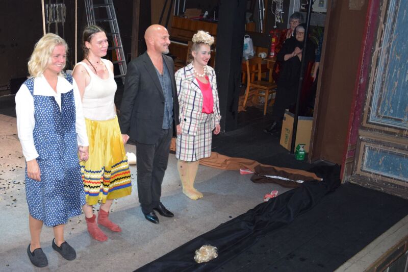 Regisseur Martin Zels verlegt den zweiten Teil des Fäkaldramas vom Küchentisch auf den Spielplatz, wodurch die Handlung zusätzlich an Dynamik gewinnt. Sehenswert, wie Monique Bergman (Erna), Melanie Janz (Grete) und Andrea Lehner (Mariedl) ihre Figuren entwickeln. Die „Präsidentinnen ihres Unglücks“ beginnen moderat und nehmen beständig Fahrt auf. Brigitte Maschl-Leitner nimmt in einer Nebenrolle besondere Aufgaben wahr. Mit ein paar Gläschen Wein wird das persönliche Glück auf einem Fest herbeiphantasiert. Mariedl findet im Unreinen eine Vorahnung paradiesischer Reinheit. Die Poesie hinter dem Schmutz herauszuarbeiten hat sich Martin Zels in seiner Inszenierung vorgenommen: „Wir lachen über Schwabs unfassbares Trio. Vielleicht haben wir nichts dagegen, wenn wir dabei ein wenig über uns selber gelacht haben. Oder geweint?“. Das Premierenpublikum würdigte die großartige Leistung der Greiner Dilettanten mit minutenlangem Beifall und Standing Ovations.