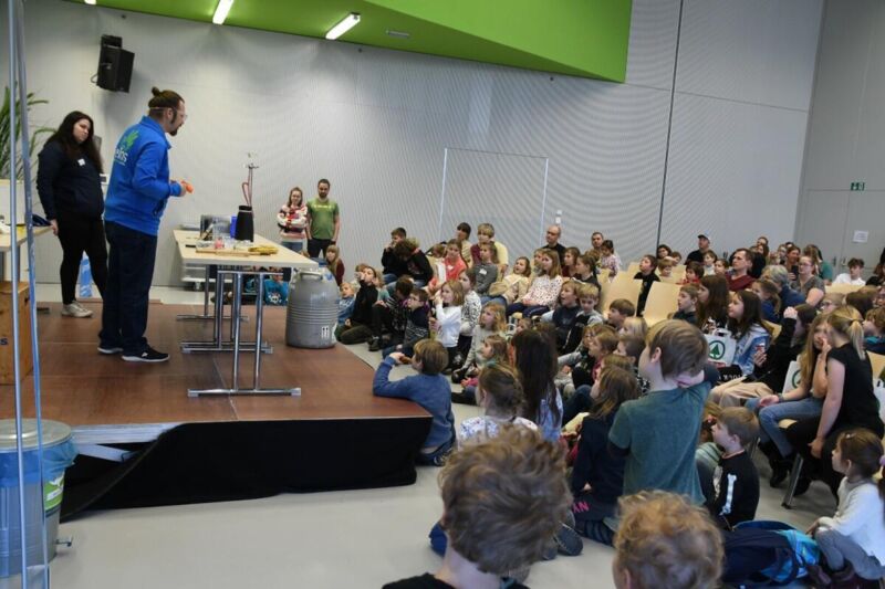 Auf über 3.000 Quadratmetern und bei über 150 Mitmachstationen konnten die Kinder ihr Wissen zu den Themen Naturwissenschaft und Technik spielerisch erweitern. Im Anschluss fand eine exklusive Science Show zum Thema Stickstoff für die Kinder statt. Nach einer Stärkung wurde noch der Tiergarten Wels besucht.