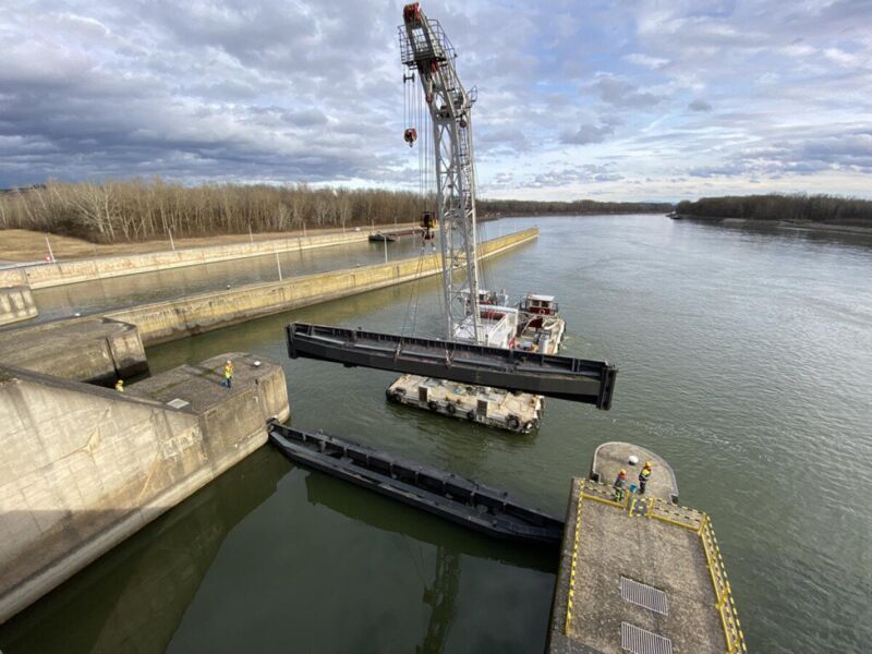 Österreichs größter Schwimmkran bei Revision im Kraftwerk Abwinden-Asten im Einsatz