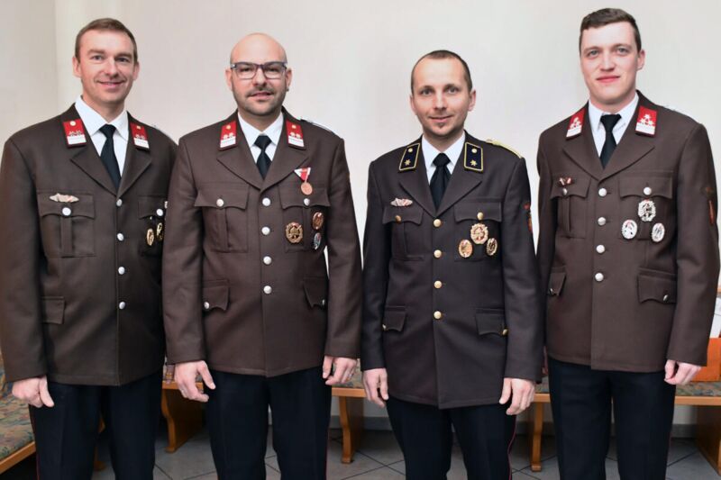 Der große Dank der Feuerwehr Münzbach gilt dem „alten Kommando“ mit Franz Fröschl, seinem Stellvertreter Manfred Fröschl, Schriftführer Johannes Strasser und Kassier Karl Wiesinger. Das neue Team wird nun von Andreas Gruber angeführt. Als Kommandant-Stellvertreter fungiert Patrick Pflügl, Schriftführer ist Simon Wolfinger und Kassier Martin Riegler.