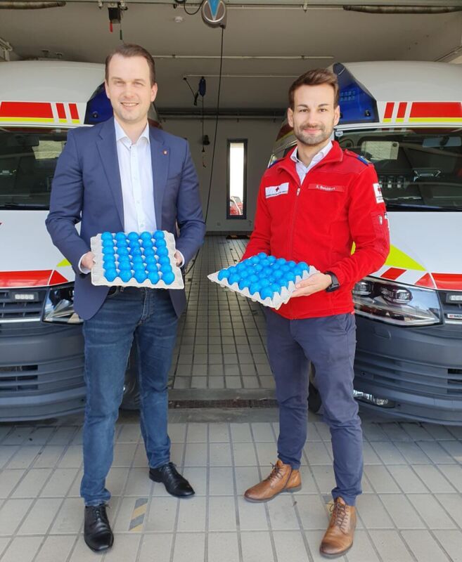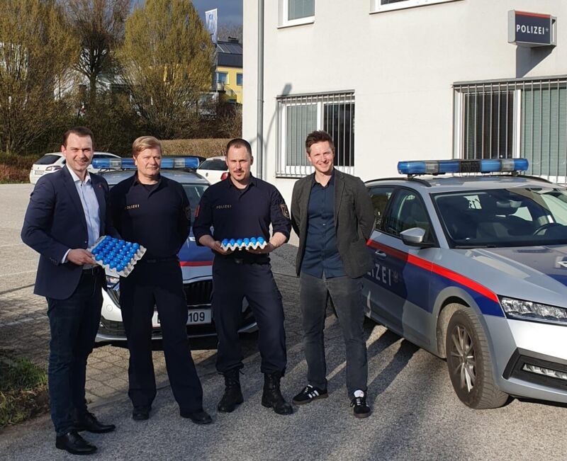 PERG. Im Namen der FPÖ Stadt Perg überbrachte Vizebürgermeister Andreas Köstinger zusammen mit Fraktionsobmann David Lindinger „blaue“ Ostergrüße an Polizei, Freiwillige Feuerwehr und Rotes Kreuz.
