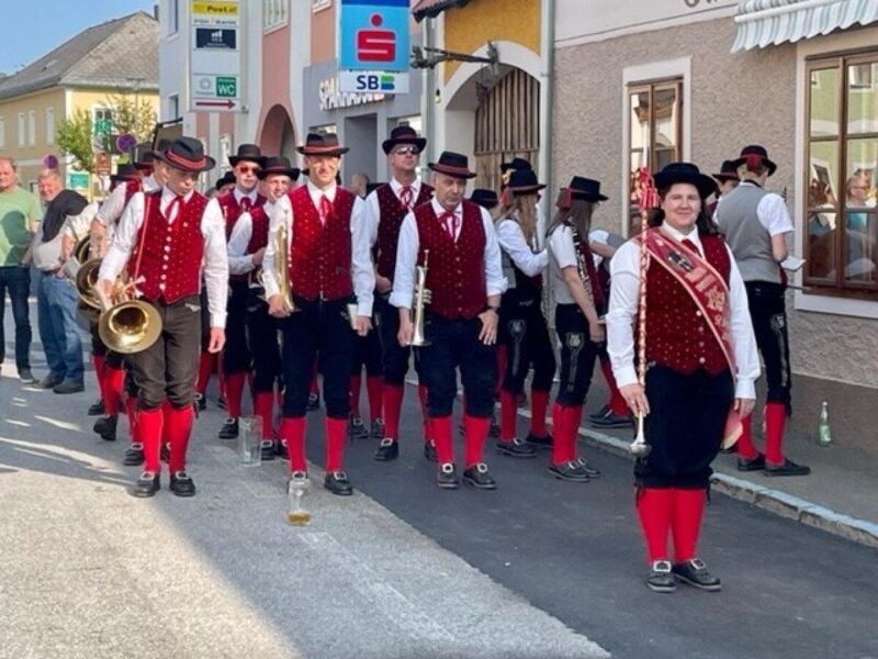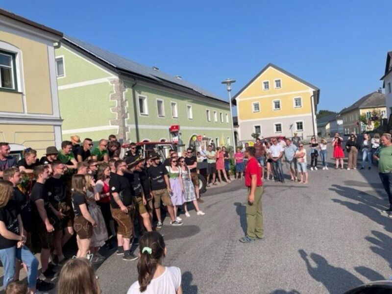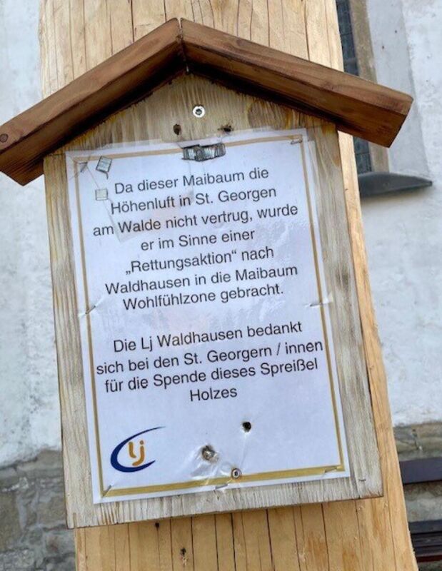 Einen derartig freudigen Empfang erleben Diebe wohl nicht alle Tage: Als die Landjugend Waldhausen am Pfingstsonntag den von ihnen entwendeten Maibaum nach St. Georgen zurückbrachte, wurden die „Übeltäter“ dort von Musikverein, Feuerwehr und Bürgermeister Heinrich Haider empfangen. Mit vereinten Kräften wurde der Baum schließlich aufgestellt.