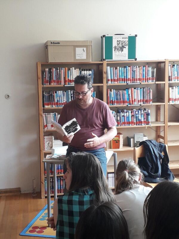 Bei der Vorstellung des zweiten Buches nahm der Autor die Schülerinnen und Schüler mit in die gefährliche Welt des Mobbings. Auch hier gelang es ihm, die Kinder in seinen Bann zu ziehen.