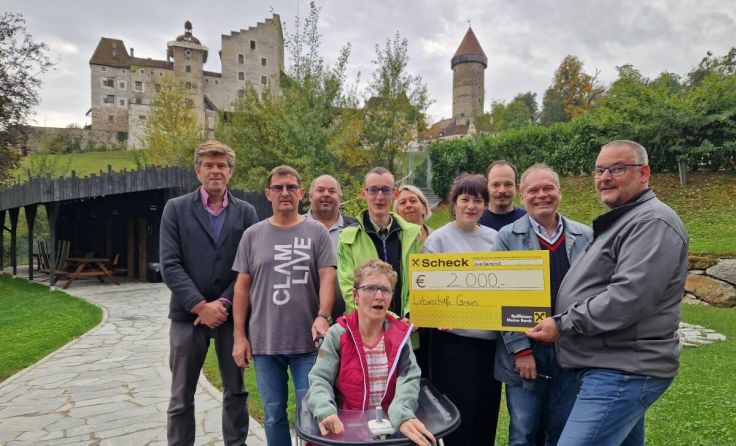 KLAM. Rockmusik und Inklusion vereinten sich harmonisch während der vergangenen Konzertsaison auf der ehrwürdigen Burg Clam. Die Konzertbesucher wurden aufgerufen, sich an einer sozialen Initiative zu beteiligen. Nun konnte das Team von CLAM live und Barracuda Music einen Spendenscheck über 2.000 Euro an die Lebenshilfe Grein übergeben.