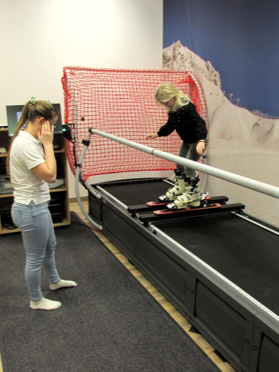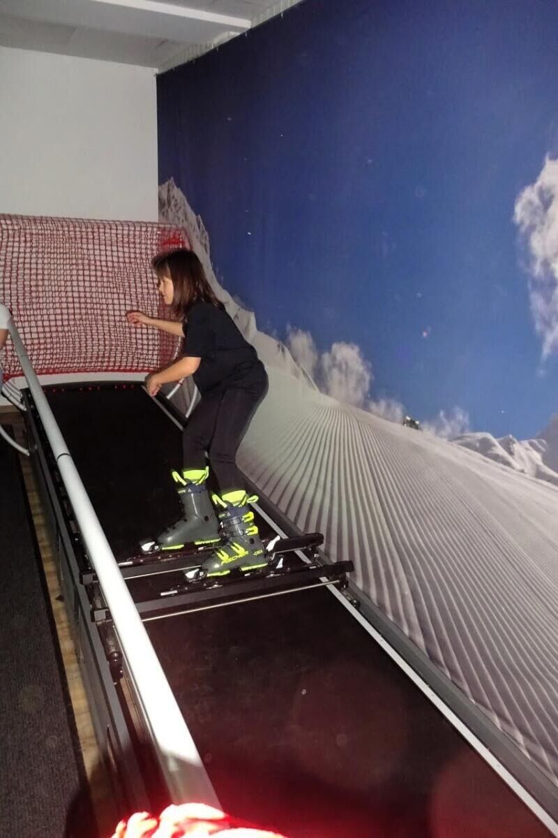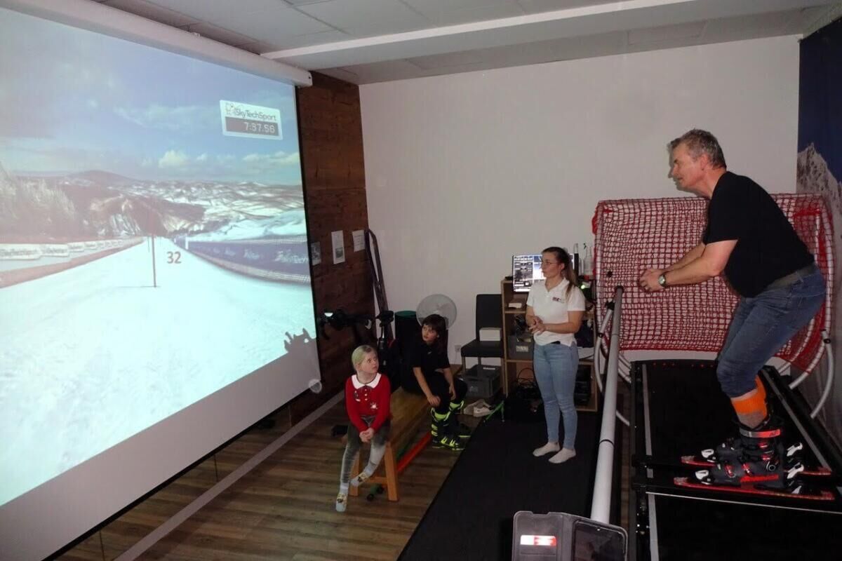 Die innovative Technik, die sonst vor allem von Skiprofis genutzt wird, ermöglichte den Teilnehmern, ihre Fähigkeiten auf virtuellem Terrain zu erproben. Der Simulator reagiert auf die Kniebewegungen der Nutzer: Je schneller die Knie umgelegt werden, desto höher steigt die simulierte Geschwindigkeit.