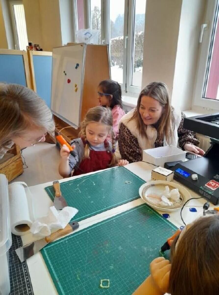 Im Jänner besuchten die KET-Verleihstationen sechs Kindergärten im Bezirk Perg und gaben vielen Kindern dort die Chance, Technik direkt und praktisch zu erleben. Im Kindergarten Mauthausen der OÖ Kinderfreunde waren zwei Lernstationen zu Gast – die KET Mediathek und der Maker Space.