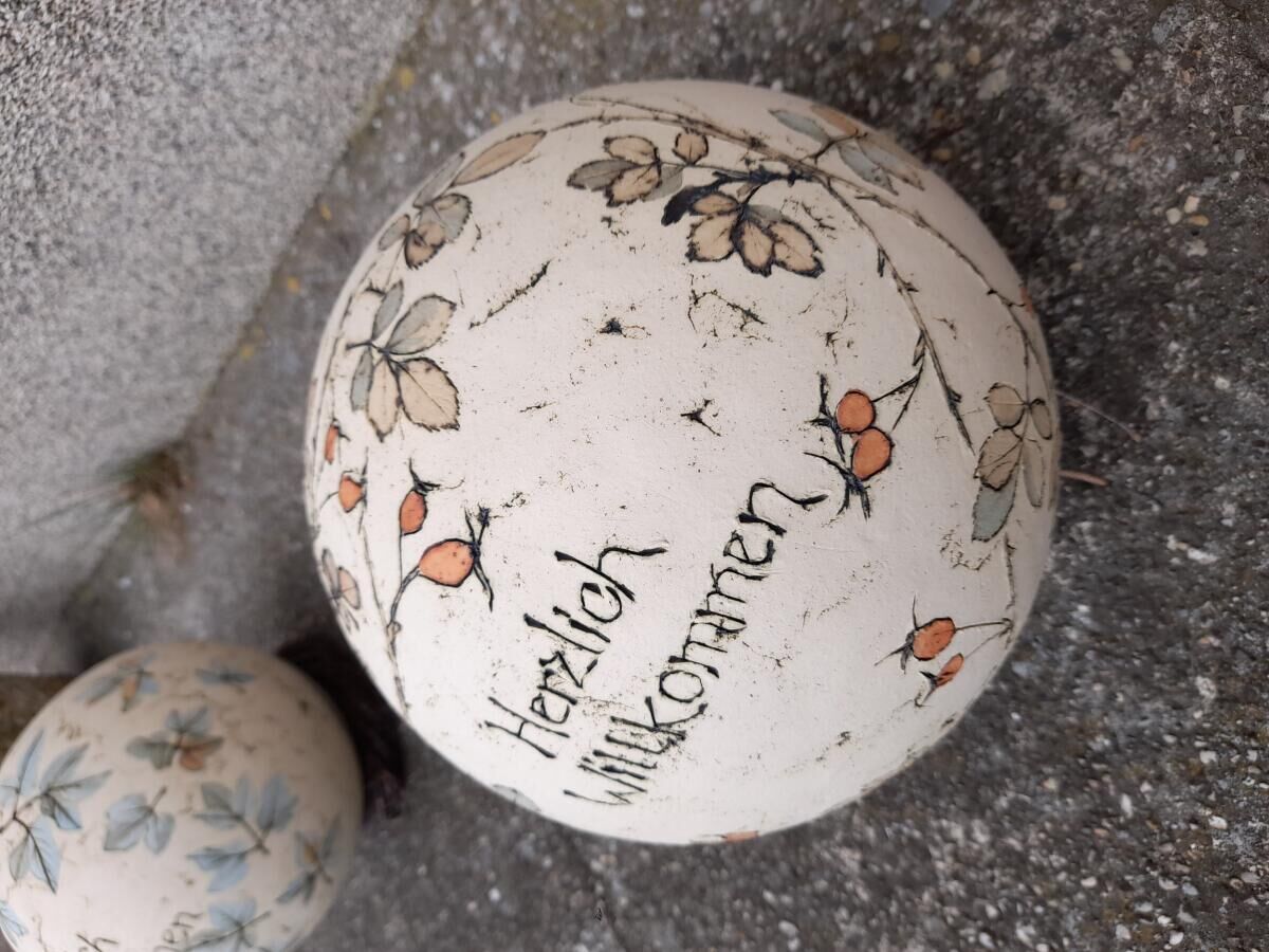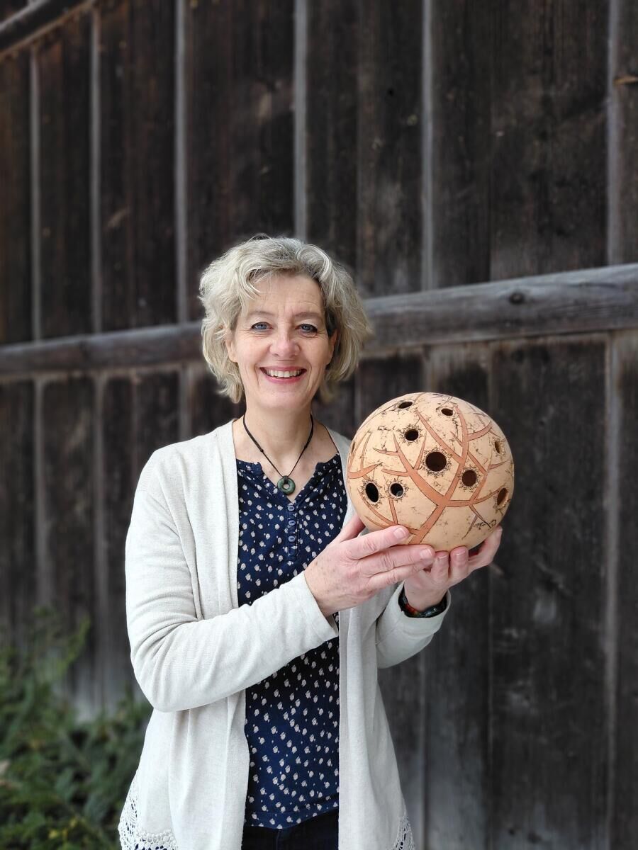 „Bei den Sonnenuhren ist es wichtig, dass das Ziffernblatt korrekt gestaltet wird. Zuhause kann man sich die freistehende Sonnenuhr in den Garten oder vor das Haus stellen – die Ziffernblattseite muss dabei nach Norden schauen“, so die 62-jährige Keramikexpertin. Die Gartenkugeln wiederum kommen besonders gut zur Geltung, wenn sie auf einen Holz- oder Metallstab gesteckt werden. Aber auch im Gras liegend sind die bunten Kugeln ein Blickfang. „Immer wieder bekomme ich von meinen Kursteilnehmern die Rückmeldung, dass sie der kreative Prozess, das eigene Tun und das keramische Gestalten am meisten befriedigt – ob das Produkt am Ende optisch perfekt wird, ist oft gar nicht so wichtig.“