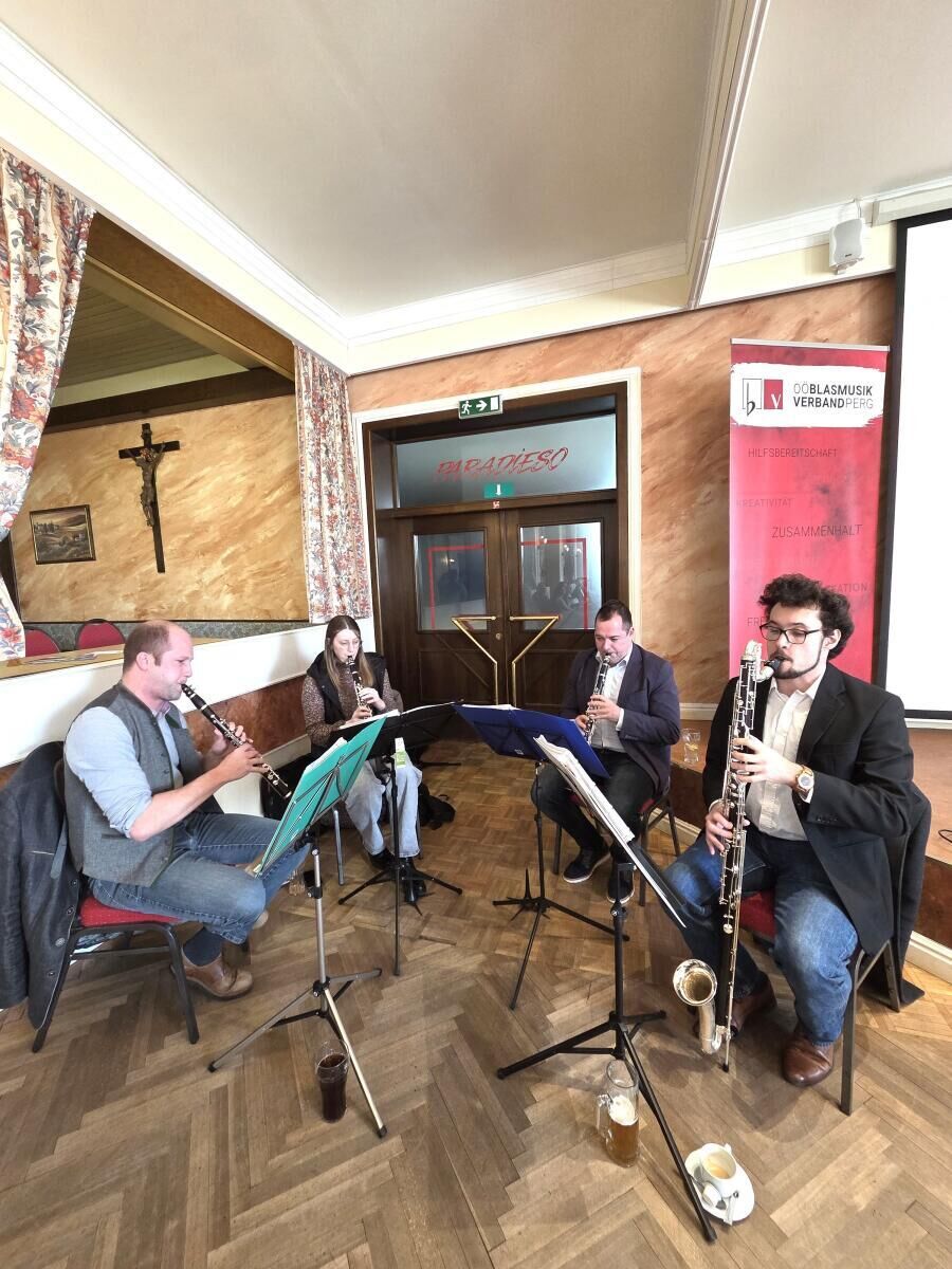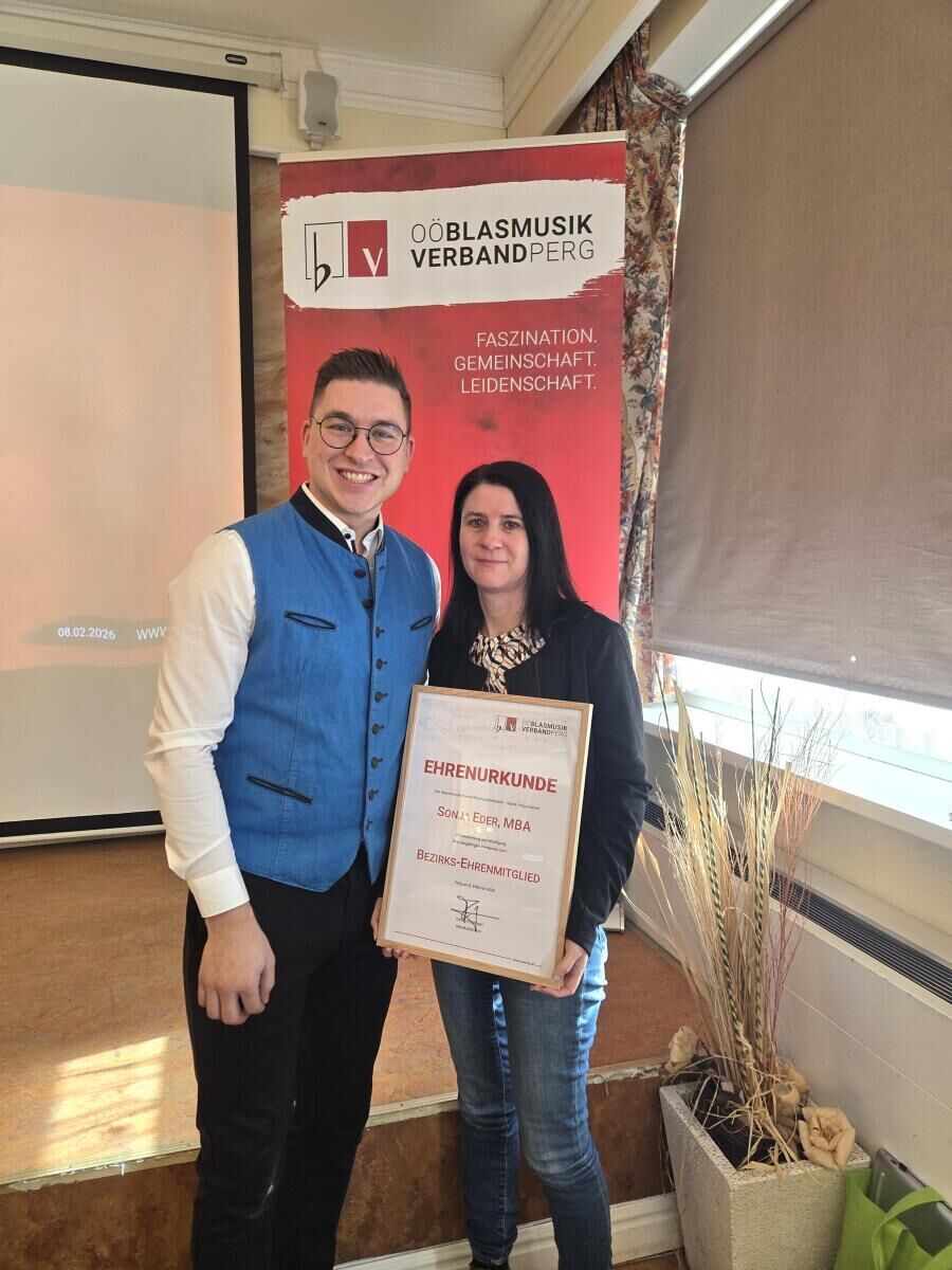 Neben den Berichten von Obmann, Stabführer, Jugendreferenten und Kapellmeister stand heuer ein Impulsvortrag des Bezirkskassiers im Mittelpunkt – mit wertvollen Anregungen für die Arbeit der Kassiere in den Vereinen. Musikalisch umrahmt wurde die Sitzung vom Klarinettenensemble der Bezirksleitung. Ein emotionaler Höhepunkt war die Verabschiedung zweier langjähriger Funktionäre: Direktor Johann Weilguni, Vertreter der Landesmusikschulen, sowie Sonja Eder, Bezirksschriftführerin, wurden feierlich geehrt. Direktor Weilguni erhielt die Verdienstmedaille in Silber des Österreichischen Blasmusikverbandes. Sonja Eder wurde in Anerkennung ihrer jahrzehntelangen Tätigkeit zum Bezirksehrenmitglied ernannt. Als neue Schriftführerin tritt Brigit Schickermüller (Musikverein Pergkirchen) in ihre Fußstapfen. Georg Palmanshofer (Direktor der Landesmusikschule Perg) übernimmt künftig die Vertretung der Landesmusikschulen im Bezirksteam.