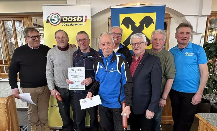 Am 11. Februar fand in der Eishalle Tragwein die Bezirksmeisterschaft des OÖ-Seniorenbundes statt. Rudolf Kastner Franz Pichler und Johann Naderer ( Sportreferenten ) konnten elf Mannschaften begrüßen. Nach den ersten beiden Spielen schaute auch der Bürgermeister von Tragwein sowie Landtagsabgeordneter Josef Naderer vorbei. Er begrüßte die Teilnehmer und hatte für alle Mannschaften ein kleines Geschenk mit. Sieger und Bezirksmeister wurde wie im Vorjahr die Ortsgruppe Naarn. Den zweiten Platz belegte die Ortsgruppe Windhaag/Perg vor der Ortsgruppe Baumgartenberg, diese drei Mannschaften spielen auch am 26. Februar in der Linzer Eishalle um den Landesmeister-Titel. Bei der Siegerehrung im Gasthaus Mitterlehner (Südstadtwirt) konnte Rudi Pichler auch den Seniorenbund-Bezirksobmann Karl Grufeneder begrüßen und mit ihm die Siegerehrung durchführen. Es gab für alle Teilnehmer schöne Preise. Am Schluss bedankte sich Rudolf Pichler noch bei seinem Team und den Hauptsponsoren, der Raiffeisenbank Perg und dem Gasthaus Mitterlehner Südstadtwirt.
