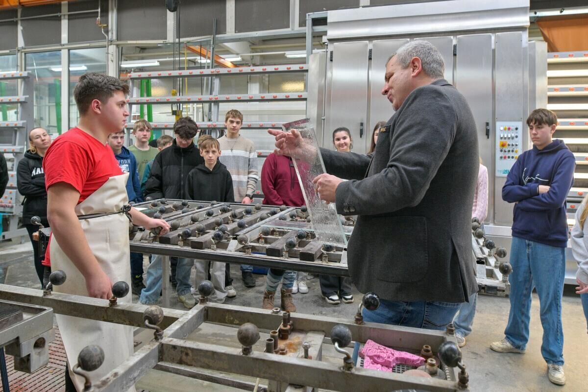 Die Mittelschulen aus Steyregg, Mauthausen, Naarn und Ried in der Riedmark sowie die Polytechnische Schule Perg nahmen das Angebot von Glas Wiesbauer an und warfen einen Blick hinter die Kulissen des Unternehmens. Insgesamt waren am Tag der offenen Tür etwa 180 Schüler bei Glas Wiesbauer zu Gast. Bei geführten Rundgängen durch die Produktionshallen präsentierten die Mitarbeiter den Jugendlichen ihre Arbeitsplätze. Bei einigen Stationen konnten die Schüler auch selbst tätig werden und den Werkstoff Glas hautnah kennenlernen. Als besonderes Highlight durften die Schüler ein Erinnerungsfoto, das direkt während der Betriebsführung auf Glas gedruckt wurde, mit nach Hause nehmen.