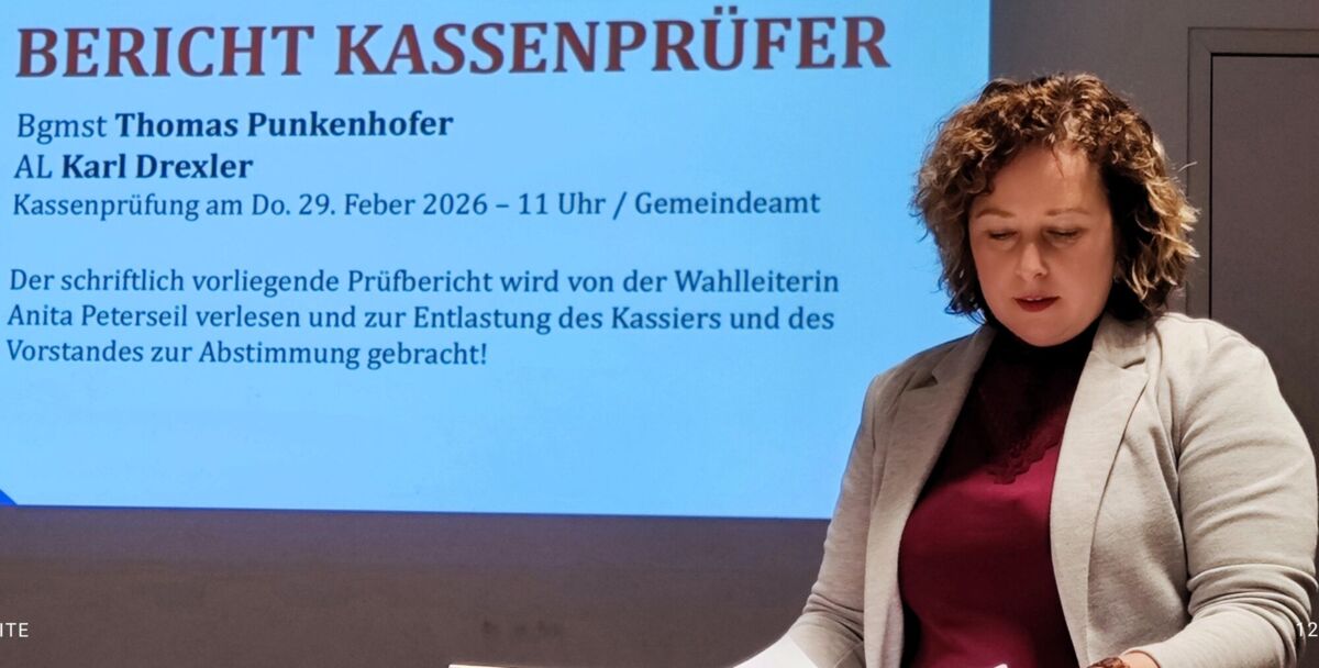 Kassier Gottfried Kraft legte die finanzielle Gebarung 2023 bis 2025 vor und beantwortete Fragen aus der Versammlung. Der schriftliche Bericht der Rechnungsprüfer wurde verlesen. Die Entlastung von Kassier und Vorstand erfolgte einstimmig. Die Wahlleitung hatte Anita Peterseil.