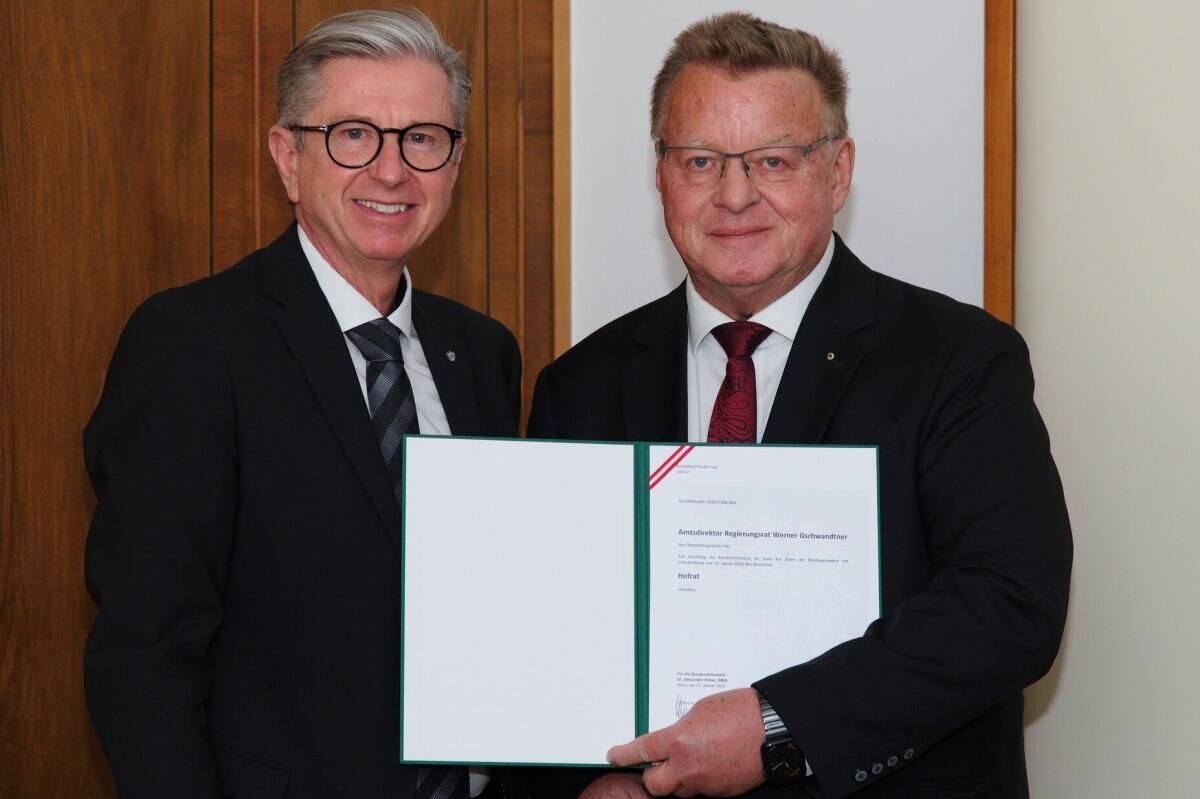 Diese hohe Auszeichnung würdigt Gschwandtners langjährige, herausragende berufliche Leistung sowie sein unermüdliches Engagement für Qualität, Verantwortung und ein starkes Miteinander. Die feierliche Überreichung des Ernennungsdekrets erfolgte im Rahmen einer Feststunde durch Helmut Katzmayr, Präsident des Oberlandesgerichtes Linz. Zu den Ehrengästen zählten unter anderem GÖD-OÖ-Vorsitzender Peter Csar sowie Landesdirektor Günther Prückl von der Versicherungsanstalt öffentlich Bediensteter, Eisenbahnen und Bergbau OÖ.