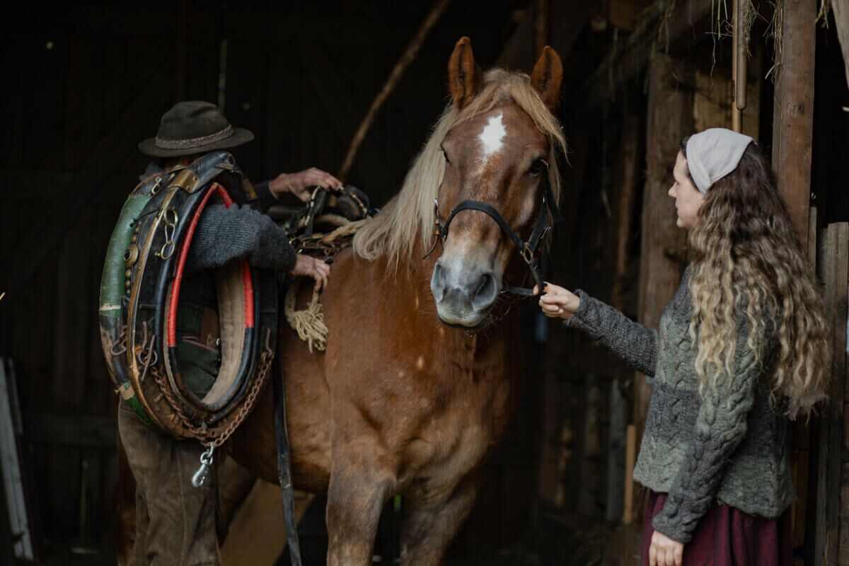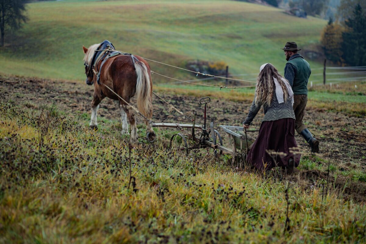 Neben Jacquelines und Benjamins Liebe wuchs auch der Wunsch, ihren Traum einer eigenen Landwirtschaft zu verwirklichen. Nach einem Wanderritt durch das Mühlviertel wurden sie mithilfe einiger Kontakte schließlich auf den kleinen Hof in Kronberg aufmerksam. Etwa fünf Hektar bewirtschaften Jacqueline und Benjamin Allmer hier. „Wir betreiben Landwirtschaft auf unsere ganz eigene Weise – anders als konventionelle Betriebe“, betont Benjamin Allmer. Ihr Fokus liegt auf kleinbäuerlicher Selbstversorgung. Die Lebensmittel der Allmers stammen vorwiegend von den Hofziegen, den eigenen Hühnern und Laufenten sowie aus dem Selbstversorgergarten. Auch die vier Pferde auf dem Allmerhof spielen eine zentrale Rolle: Wo anders Traktoren und Maschinen zum Einsatz kommen, übernehmen hier die majestätischen Vierbeiner Aufgaben wie Pflügen, Eggen, Mähen oder Aufzetteln.