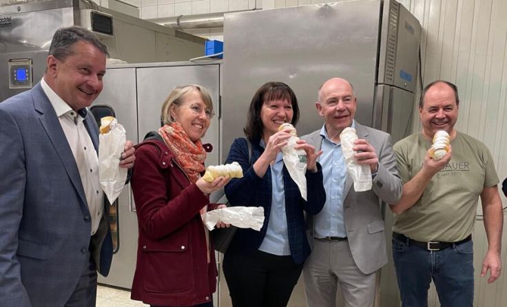 Danach ging es weiter nach Pabneukirchen, wo rund 35 Unternehmer einen Blick hinter die Kulissen der Bäckerei Aschauer werfen konnten und dabei eindrucksvoll gezeigt wurde, wie das traditionelle Bäckerhandwerk gelebt wird. Besonders interessant war für viele Teilnehmer die Möglichkeit, selbst eine originale Aschauer-Schaumrolle zu füllen und so einen Einblick in die tägliche Arbeit der Bäckerei zu bekommen.