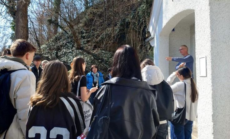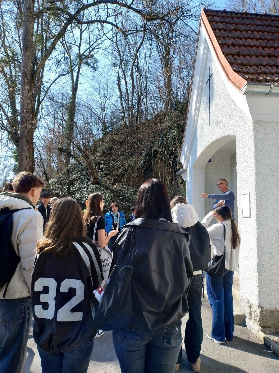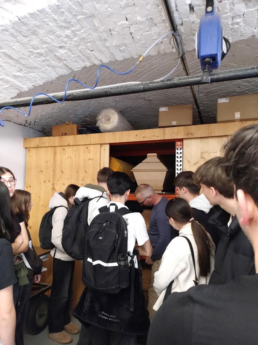 Am Nachmittag besuchten die Klassen das Bestattungsunternehmen Knoll. Ferdinand Knoll und Gudrun Haderer gewährten interessante Einblicke in den Arbeitsalltag und die Besonderheiten des Familienbetriebs. Die Schüler besichtigten unter anderem die Druckwerkstatt, in der Trauerparten und Gedenkbücher gestaltet werden, sowie die Werkstatt zur Sargaufbereitung. Dadurch erhielten sie ein umfassendes Bild davon, wie vielfältig und verantwortungsvoll die Tätigkeiten in der Bestattungsbranche sind.