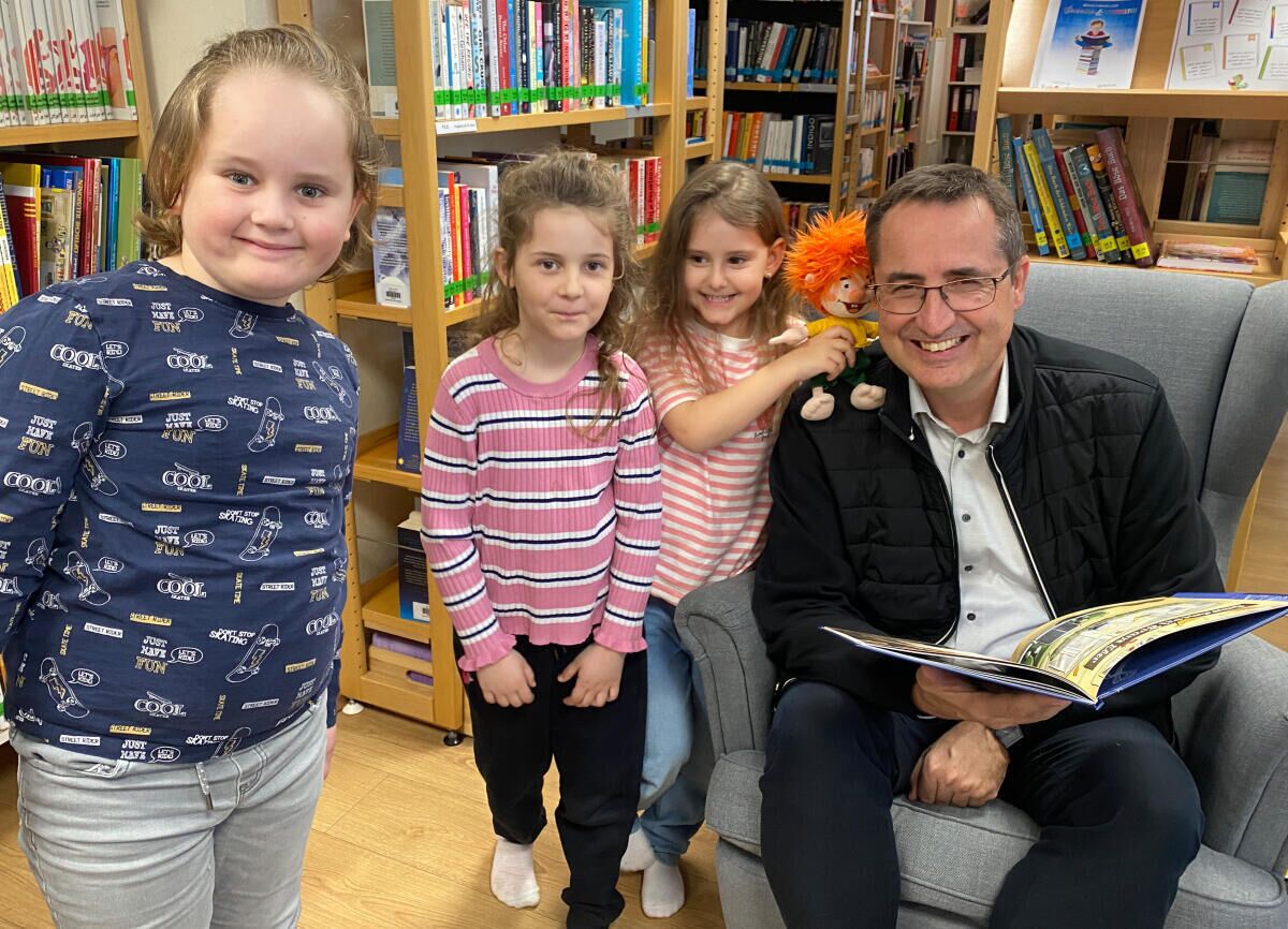 Bereits am Vormittag besuchten rund 30 Schulanfänger aus dem Kindergarten die Bibliothek. Sie lauschten drei Geschichten, die ihnen Brigitte Hader vorlas, und zeigten dabei große Aufmerksamkeit und Begeisterung. Am Nachmittag wurde die Bibliothek zum Treffpunkt für Familien: Rund 20 Kinder kamen gemeinsam mit ihren Eltern, um den Geschichten zu folgen. Bürgermeister Max Oberleitner brachte mit „Pumuckl“ einen Klassiker zum Klingen, Julia Ribbeck las aus „Frau Honig“, Gerti Öhlinger stellte „Die Erinnerungskiste“ vor und Sonja Lorenz erzählte aus „Auch Drachen müssen mal“. Für ein besonders charmantes Detail sorgte dabei der Pumuckl von Josefin, der zur Lesung mitgebracht wurde und gemeinsam mit dem Bürgermeister für ein Erinnerungsfoto posierte.